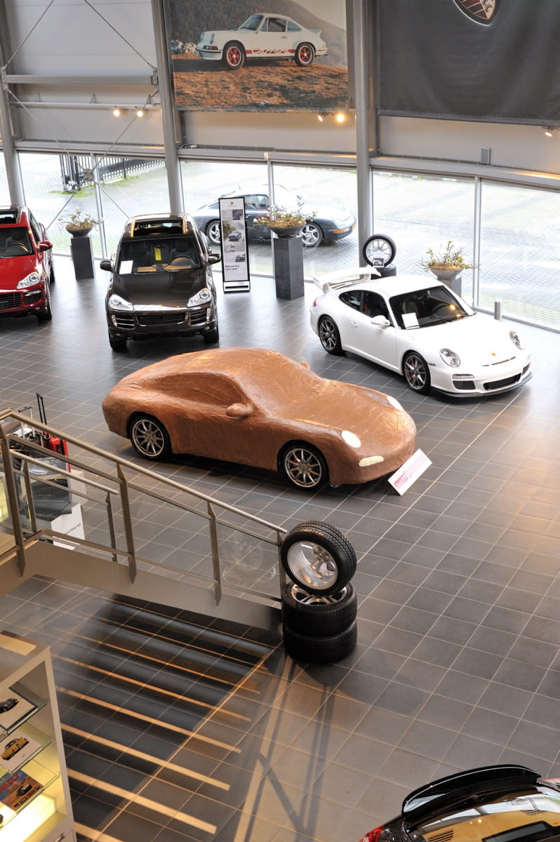 El Choco997 permanecerá expuesto de tal guisa en el concesionario Porsche de Gelderland hasta que pase el 5 de diciembre, cuando será desmontado. Esperemos que al menos inviten a los clientes a un poco de chocolate, con 175 kg creo que tienen para rato. A continuación podéis echarle un ojo a esta delicia automovilística – en todos los posibles sentidos -, acompañada de otros Porsche del concesionario y fotos del proceso de creación.