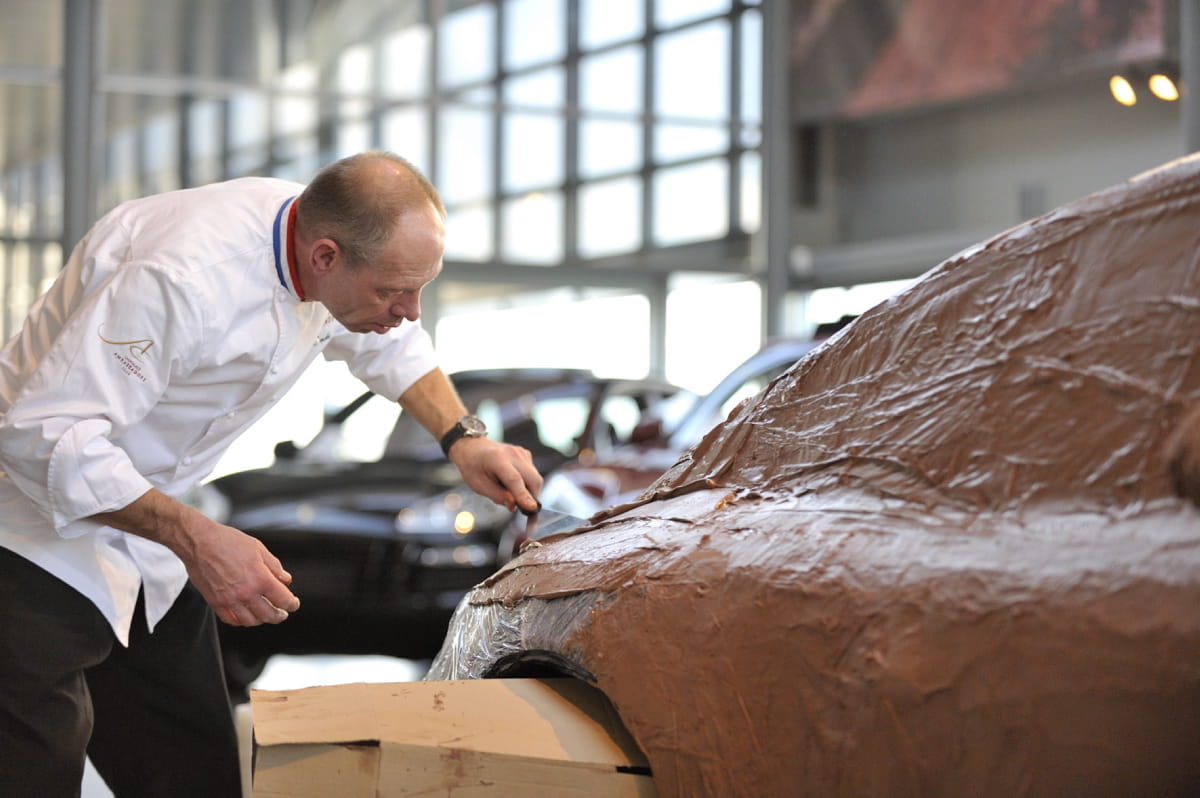 El Porsche Center de Gelderland, en los Países Bajos, ha tenido una curiosa idea promocional. Aprovechando la tradición chocolatera de la zona y la aproximación de la temporada vacacional han cogido un Porsche 911 Carrera S y lo han cubierto con 175 kilos de chocolate con leche. La idea era fabricar un molde a escala de un 911 y rellenarlo de chocolate, pero hubiese resultado demasiado caro y complicado, así que protegieron la unidad con abundante plástico y la cubrieron de chocolate fundido.