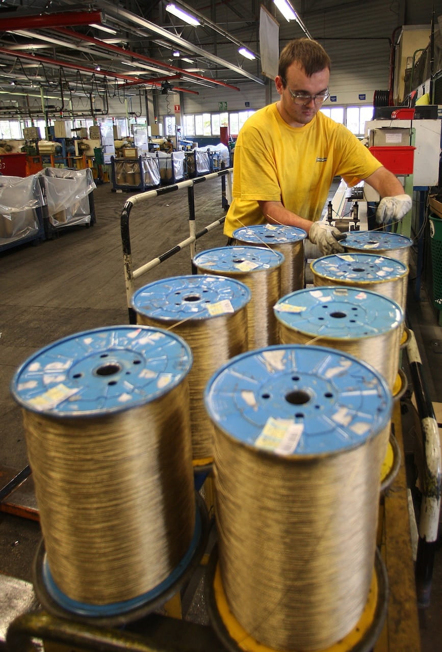 Los últimos productos que se añaden en la confección son diversas gomas de relleno o de refuerzo como la que protege los francos. En este punto del proceso están estructurados los materiales pero el neumático todavía no tiene forma.