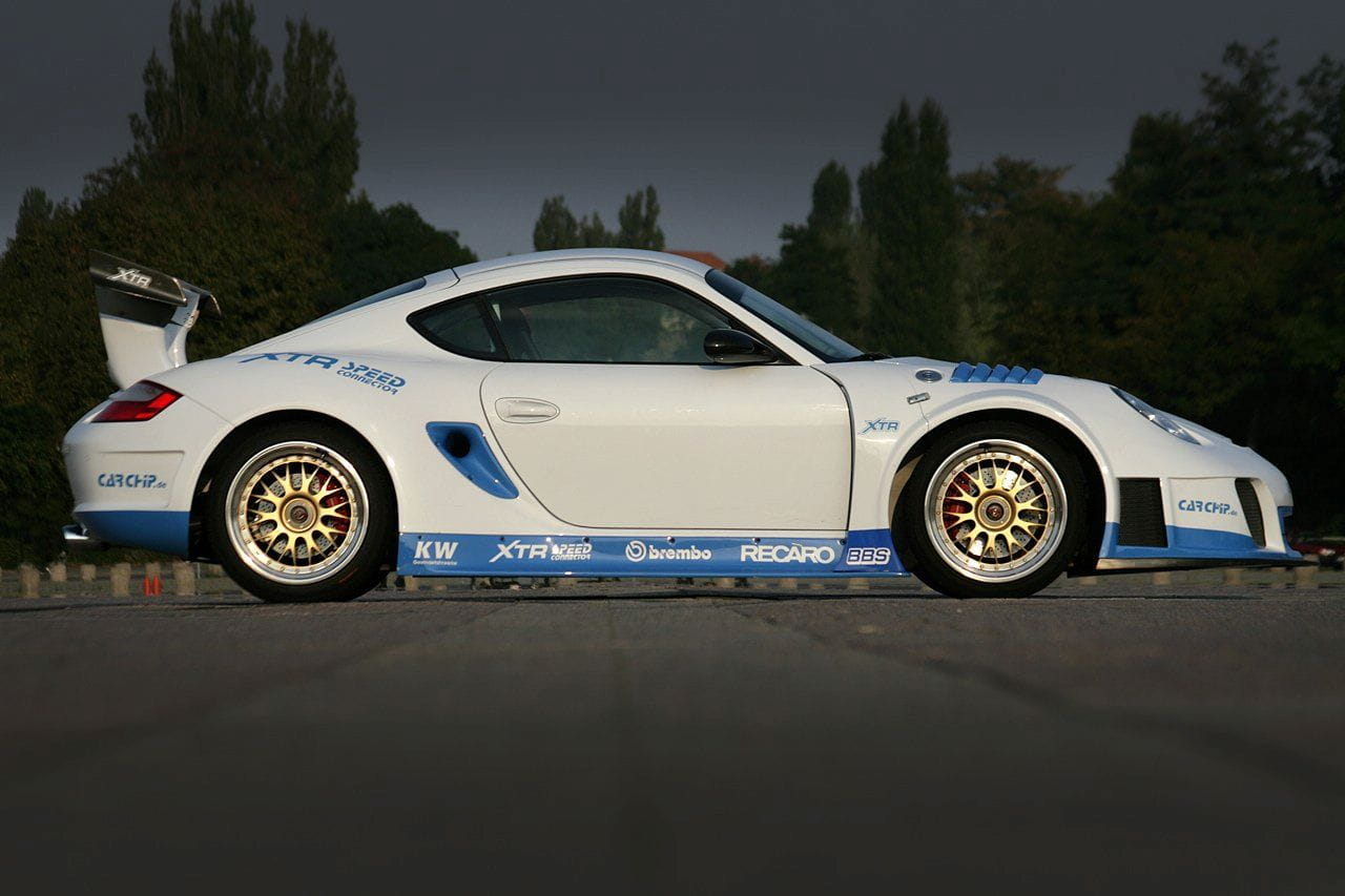 El preparador alemán XTR Carchip también lo cree así. La base de un Porsche Cayman 987 S del 2006 recibe un tratamiento especial para convertirlo casi en un coche de competición. De un primer vistazo llama la atención el ensanchamiento de su carrocería, realizado sin el más mínimo reparo, con una anchura de vías trasera imponente. Pero bajo esta agresiva estética se esconden muchos más cambios.
