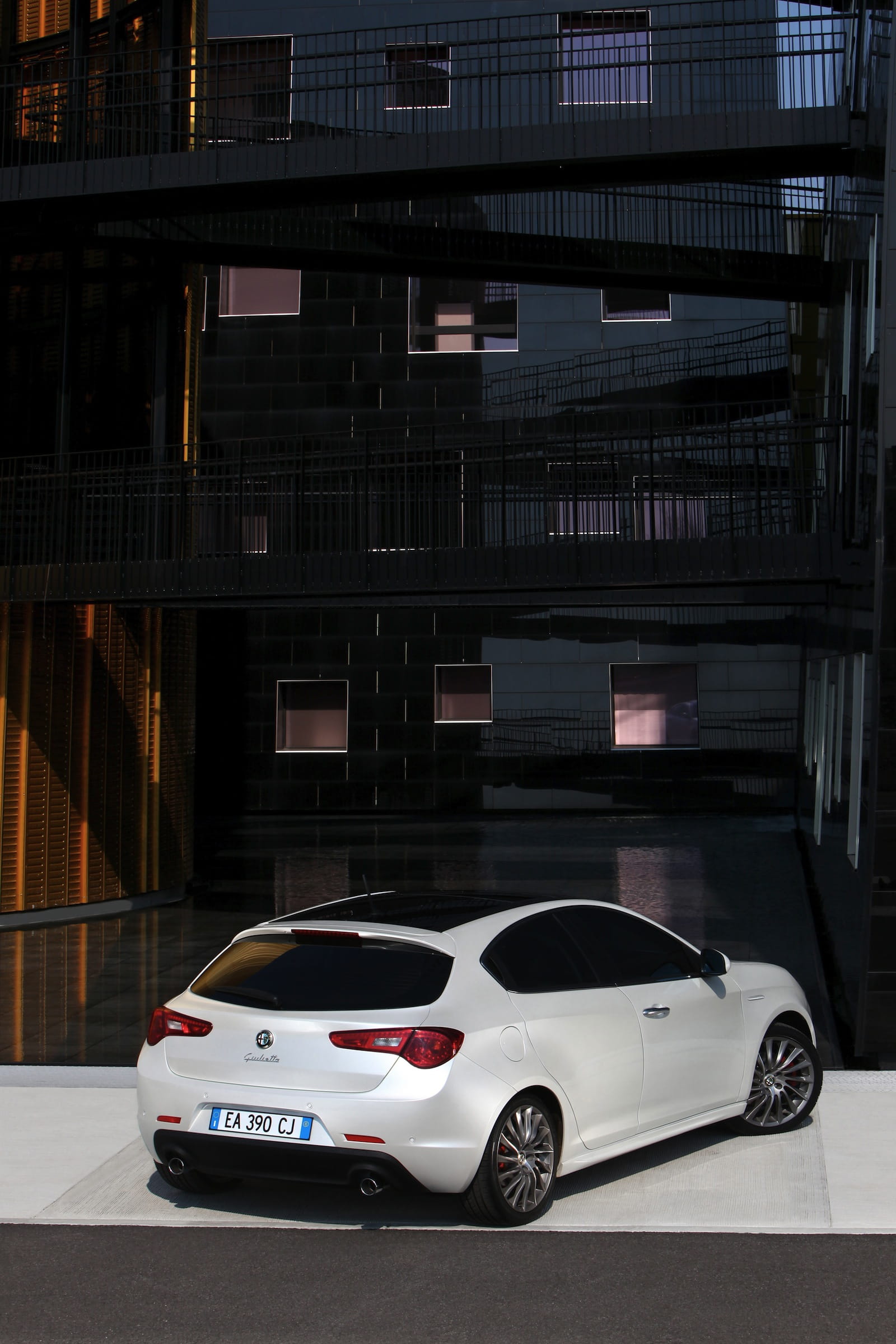 Como ya sabíamos, el Giulietta sólo estará disponible en versión de cinco puertas, quedando la carrocería tres puertas en exclusiva para el Alfa MiTo. Esto no le impedirá ofrecer una imagen dinámica y deportiva, con una caída del techo en su parte trasera bastante pronunciada para asimilarse a un estilo coupé y con los tiradores de las puertas traseras sabiamente camuflados, siguiendo la tendencia que inaugurara el Afa 156 y posteriormente adoptó el Alfa 147.