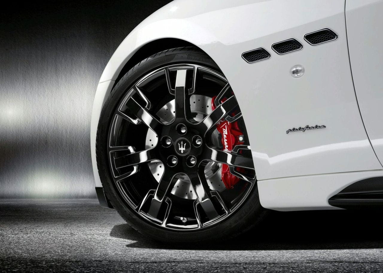 En esta misma línea se incluye el pedalier deportivo en aluminio y las llantas de aleación “estilo competición” en color negro brillante con 20” de diámetro. Su bajo perfil es más visible gracias a que es 10 cm más bajo. Suspensiones mejoradas, amortiguadores más duros, barras estabilizadoras más largas y discos perforados fortalecen el control del GranTurismo S.