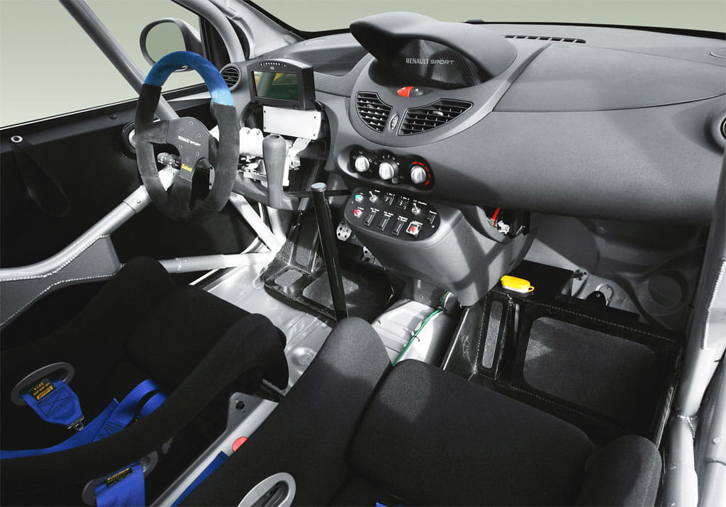 Sobre la base del Twingo RS de calle, el Twingo RS R2 ofrece el motor 1.6 16v potenciado desde los 133 CV de serie hasta los 160 CV a 7.250 rpm, entregando un par máximo de 160 Nm a 5.500 rpm. La caja de cambios es ahora de tipo secuencial, con cinco relaciones, y además tiene un diferencia de deslizamiento limitado de ZF. Por supuesto, su naturaleza principalmente competitiva trae otros cambios más profundos.