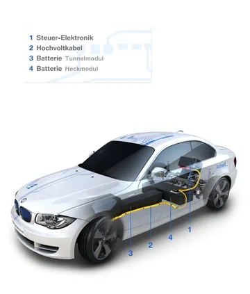 El primer prototipo de emisiones nulas de BMW cuenta con un motor desarrollado a propósito para la plataforma del BMW Serie 1 Coupé, con una potencia máxima de 170 CV y un par de giro máximo de 250 Nm en todo su rango de revoluciones. Manteniendo el estilo de BMW, se ha conservado la tracción trasera integrando el motor en el eje trasero bajo el maletero y prescindiendo por lo tanto del eje de la transmisión convencional.
