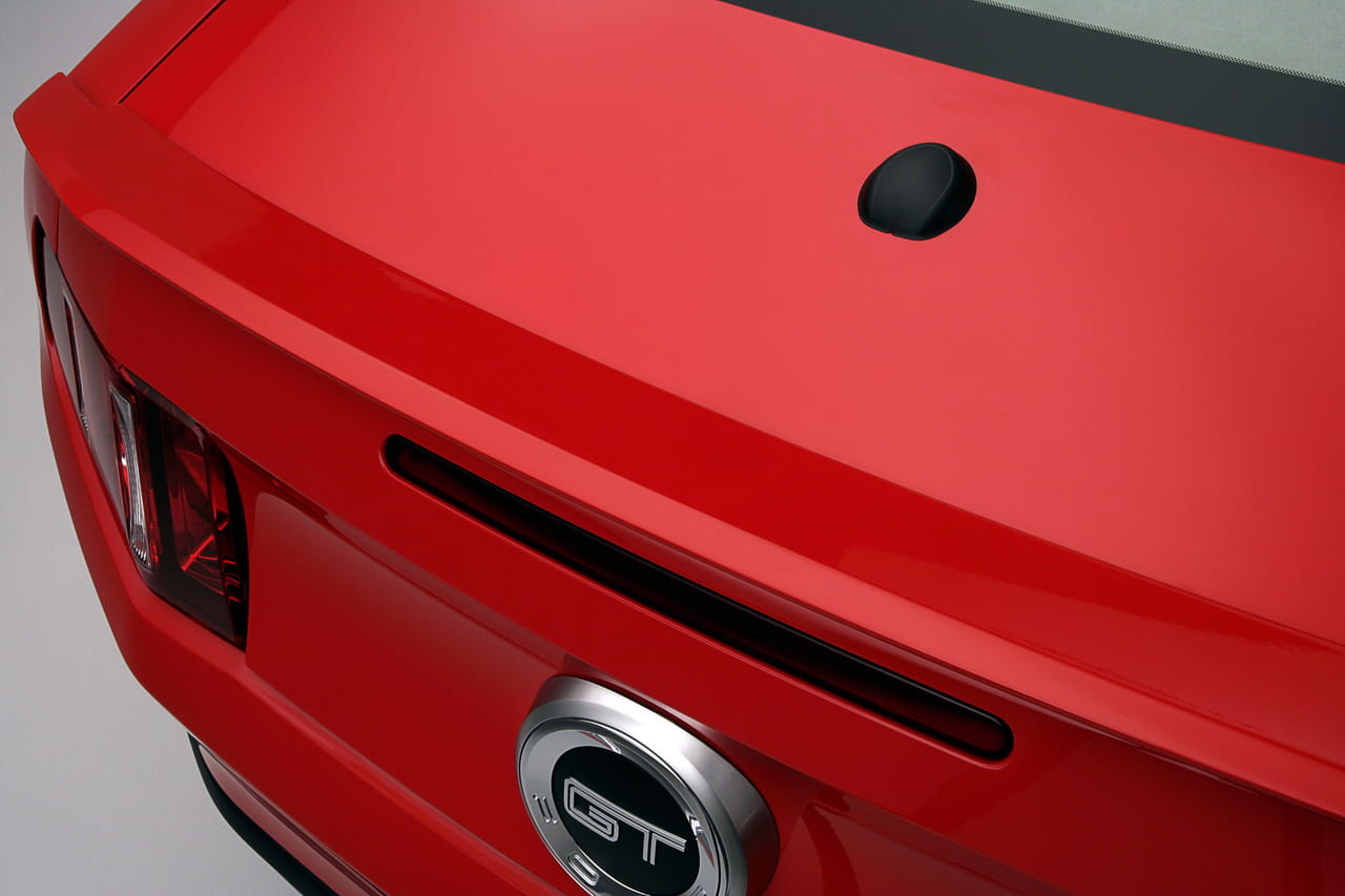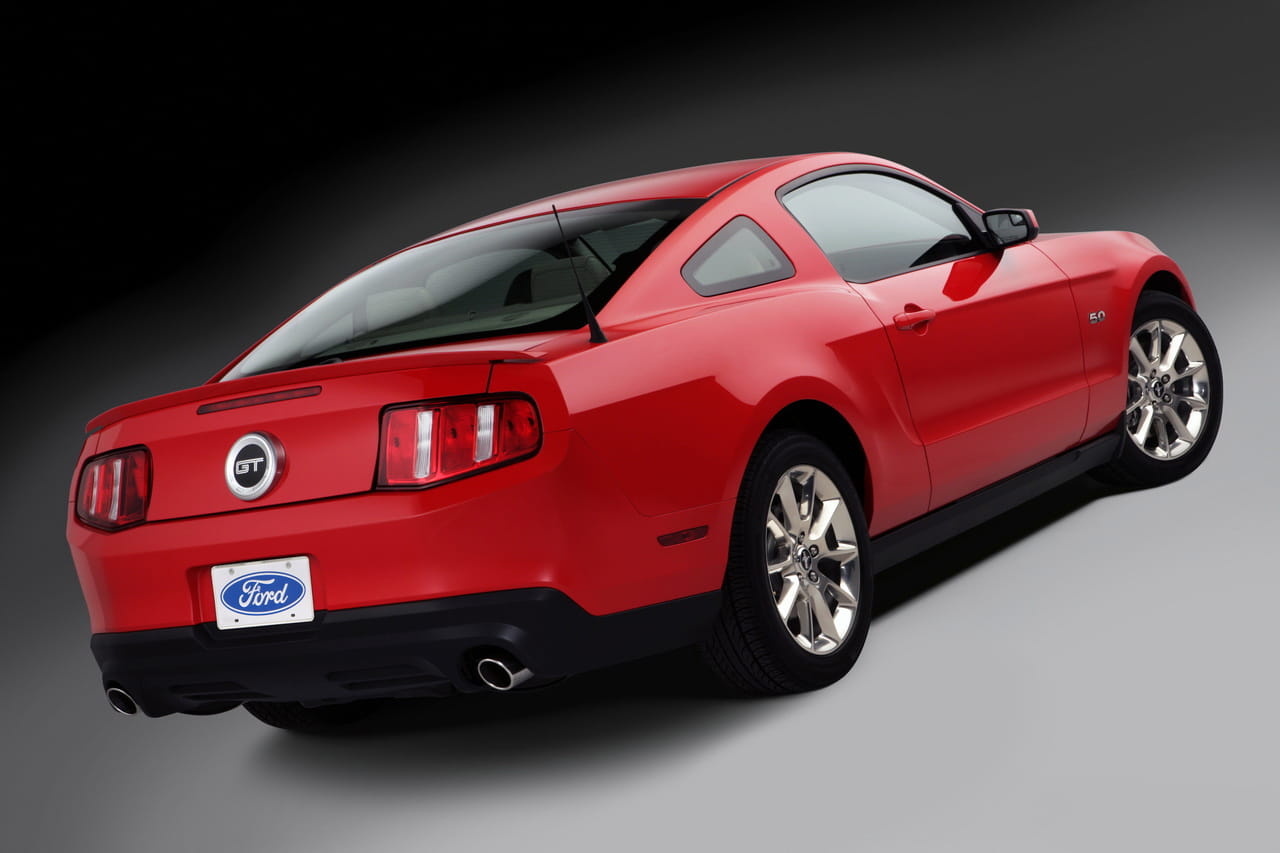 Exteriormente el Ford Mustang GT no se diferencia del MY 2010 salvo por la insignia “5.0” situada en las aletas delanteras y por pequeños detalles como el cristal extra situado en los retrovisores para cubrir algunos de los puntos muertos. Además de los colores que existían actualmente en la gama se añaden tres tonos más, el amarillo Yellow Blaze Tri Coat, el plateado Ingot Silver y el rojo Race Red que aparece en las imágenes.