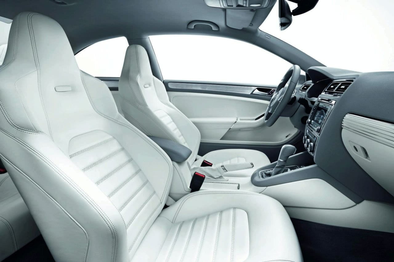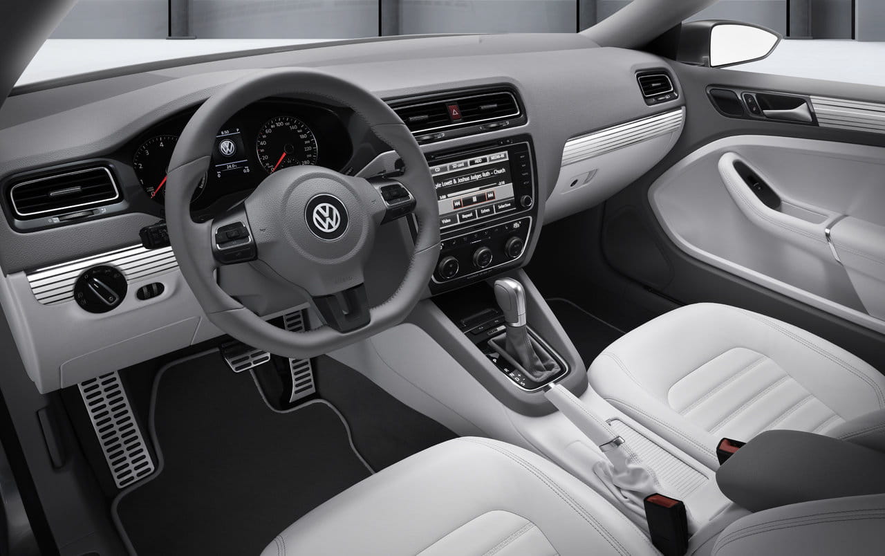 El habitáculo es similar al de los Golf, pero tiene peculiaridades, como una consola central más futurista, que emplea más las líneas rectas. Prácticamente no variará en el modelo de producción, aunque puede que tengamos que decir adiós al contraste gris claro-blanco, que tan bien funciona aquí. La instrumentación y volante se pueden encontrar en otros Volkswagen, sin cambios. La consola central se extiende a los dos asientos traseros, con tomas aireadoras y huecos portaobjetos.