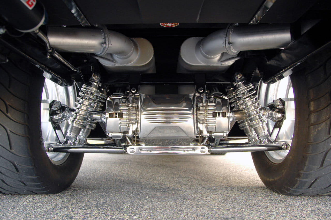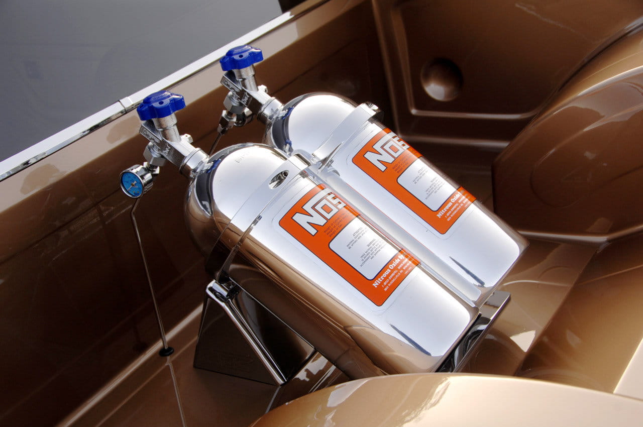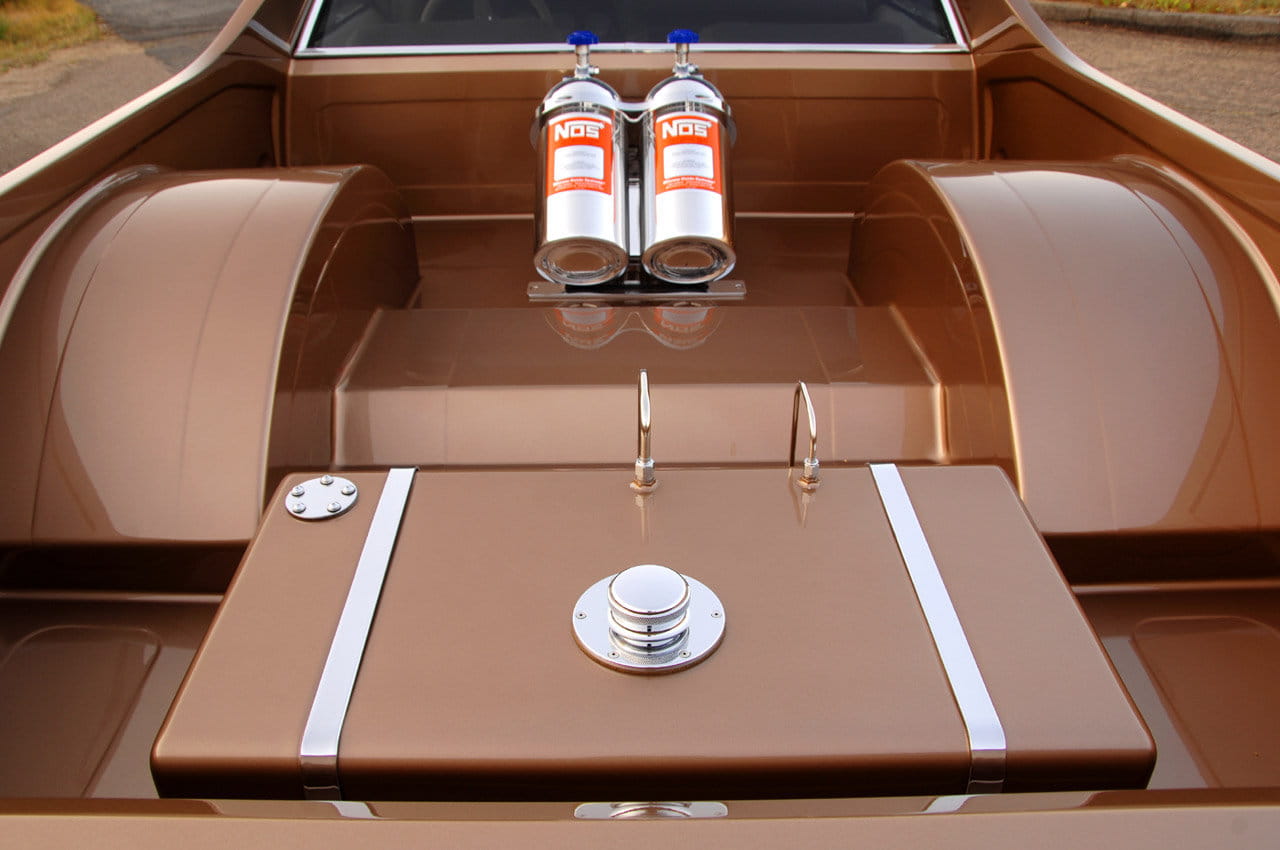 Estas prestaciones se consiguen con gasolina estándar de 91 octanos, pero si a su dueño Mike Miller se le ocurre apretar el botón del óxido nitroso su potencia pasará a ser de 1.020 CV. Acoplado a una caja de cambios GM 4L80E y a un enorme juego de diferenciales, lleva ruedas de drag-racing, uno de sus principales propósitos. Desconocemos sus prestaciones o tiempos del cuarto de milla, pero creo que se lo podría ventilar en unos 9 segundos, cayendo el 0 a 100 km/h en menos de tres segundos.
