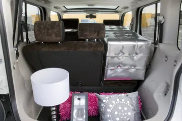 El Nissan Cube tiene cinco plazas, que destacan por su amplitud, especialmente detrás. El espacio disponible para las piernas es ingente, y los más altos tampoco tocarán con la cabeza en el techo gracias a la altura del coche y la regularidad de sus formas. El maletero cubica 255 litros, una capacidad correcta sin más para su tamaño, pero buena si tenemos en cuenta el espacio interior. La podemos aumentar, ya que la banqueta trasera es desplazable longitudinalmente en 24 cm, a costa de estrujar un poco a los que van detrás.