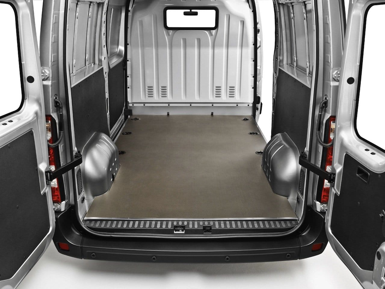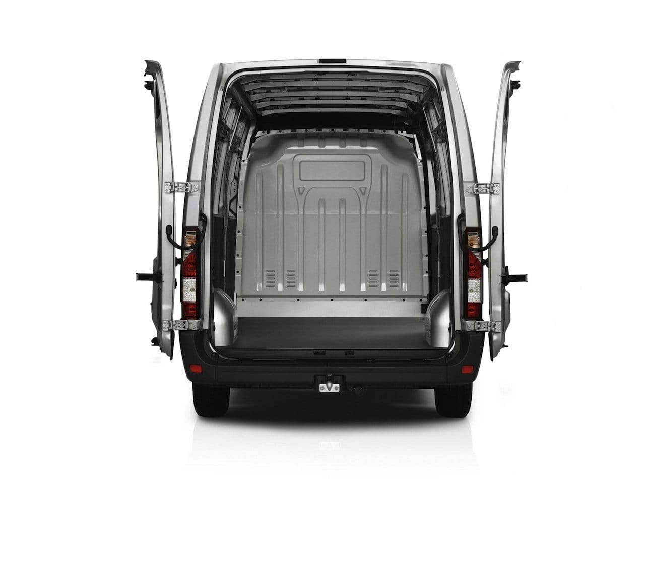 En la parte trasera puede distinguirse que la asimetría entre las lunas de los portones crece todavía más y a media altura se incorpora una tercera luz de freno con forma triangular. Estéticamente no parece una elección muy agraciada pero en condiciones de baja visibilidad será más fácil ver si la furgoneta está frenando. Las ópticas principales son algo más grandes y modifican su distribución.