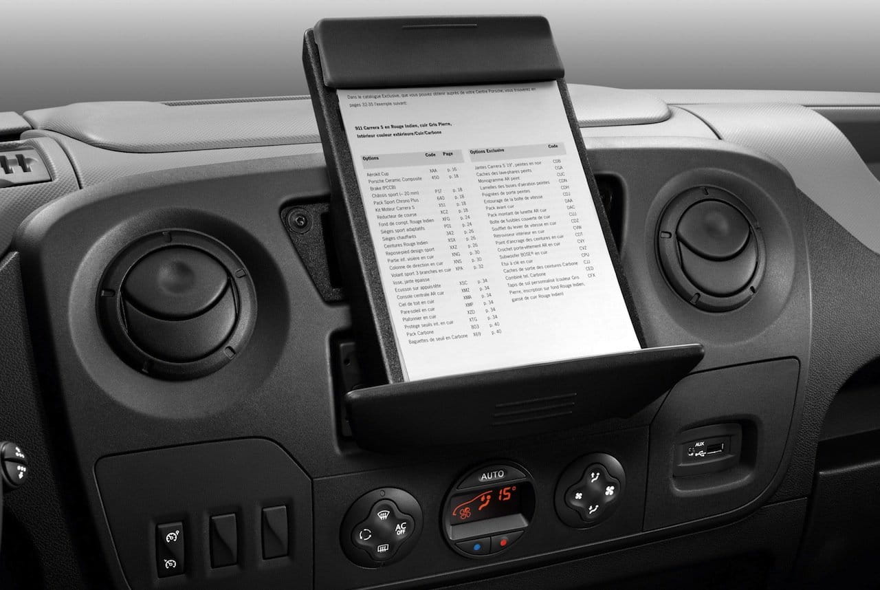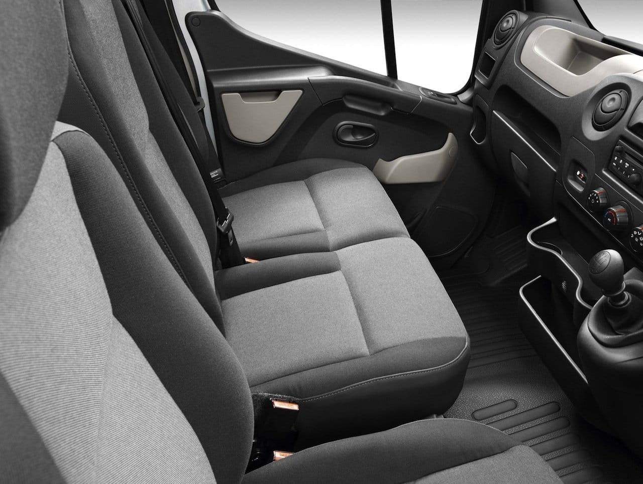 Además del compartimento de carga mayor, en todas las versiones de la Renault Master la parte de la cabina dedicada a los pasajeros ha ganado 5.7 centímetro de longitud que han sido destinados a la comodidad del pasajero y, especialmente, al almacenamiento de objetos. En las puertas hay tres apartados para guardar objetos y todo el salpicadero cuenta con pequeños compartimentos, incluido un pequeño atril para documentos en formato A4 que se puede retraer.