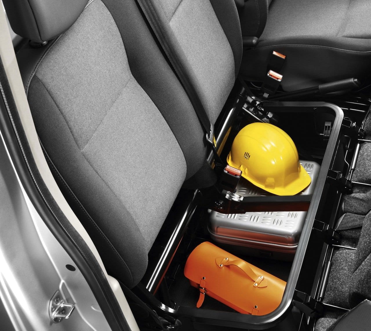 Debajo de los asientos también hay un espacio para pequeños objetos y así muchos otros. Estéticamente el diseño del interior está más recargado aunque el estilo es similar. El volante es de nueva factura y puede incluir botones multifunción para el manejo del equipo de sonido y del ordenador de a bordo. El aspecto del habitáculo puede elegirse entre el “tejido carbón” de serie, la combinación de azul oscuro con naranja o el “Leather Look”, que ofrece una mayor durabilidad.