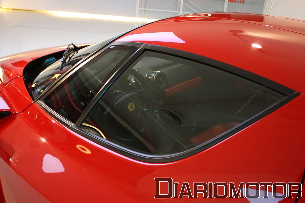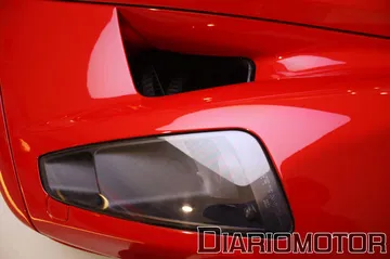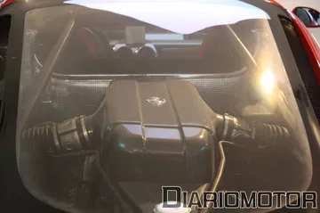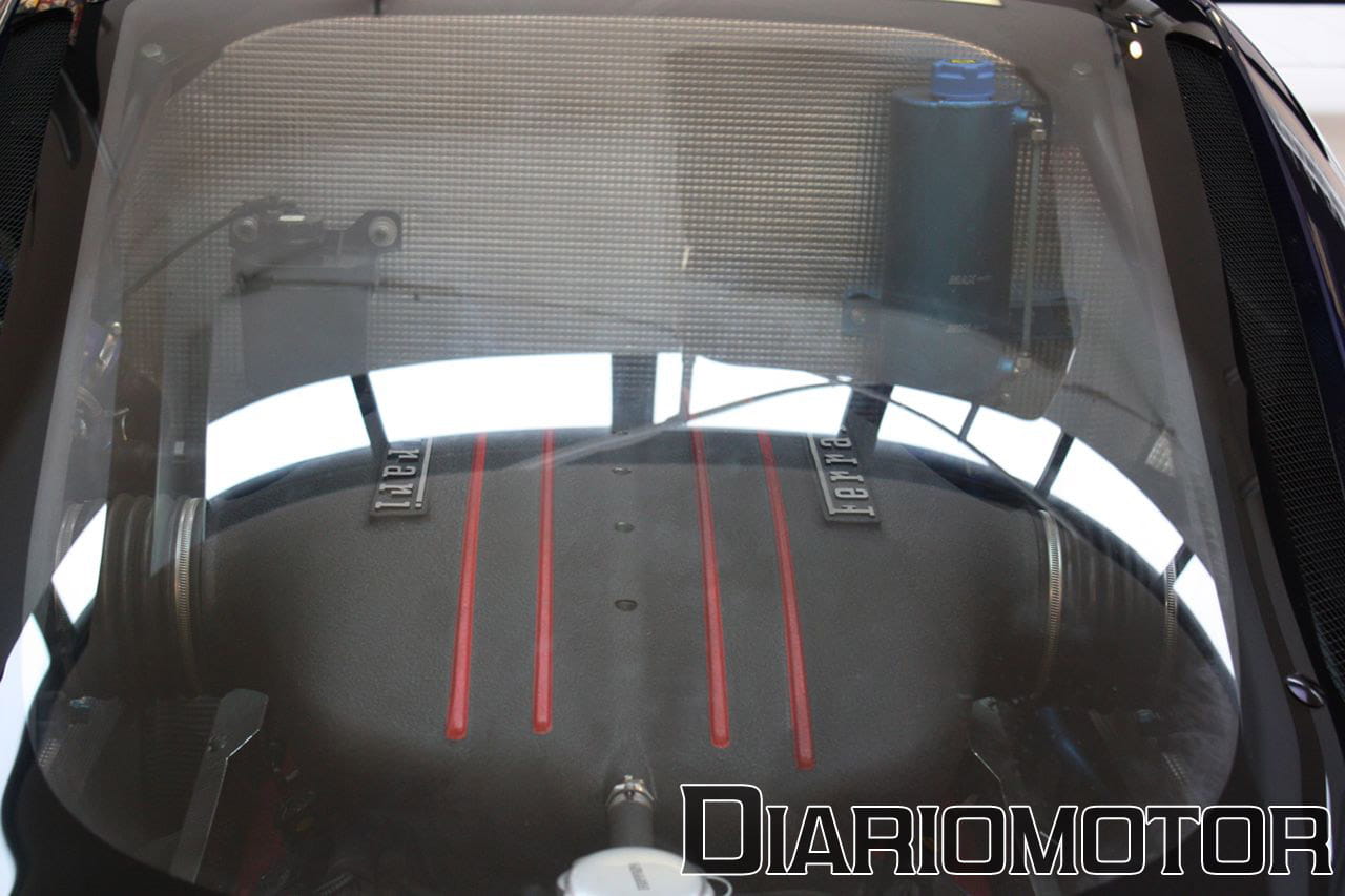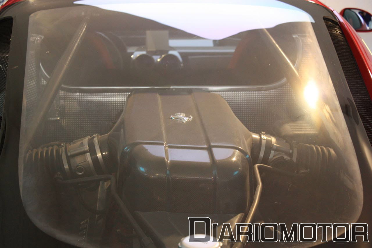Un detalle característico, aunque no exclusivo, es que sus puertas se abren hacia arriba. El interior también rezuma deportividad con un diseño sobrio y bacquets de competición. El volante también es parecido al de las carreras y entre otros, dispone de los botones para cambiar el funcionamiento de la caja de cambios a Sport o Race, que afecta a la velocidad de cambio y a los parámetros del control de tracción. Es decir, el equivalente a el Manettino que incorporan los modelos de la marca actualmente.