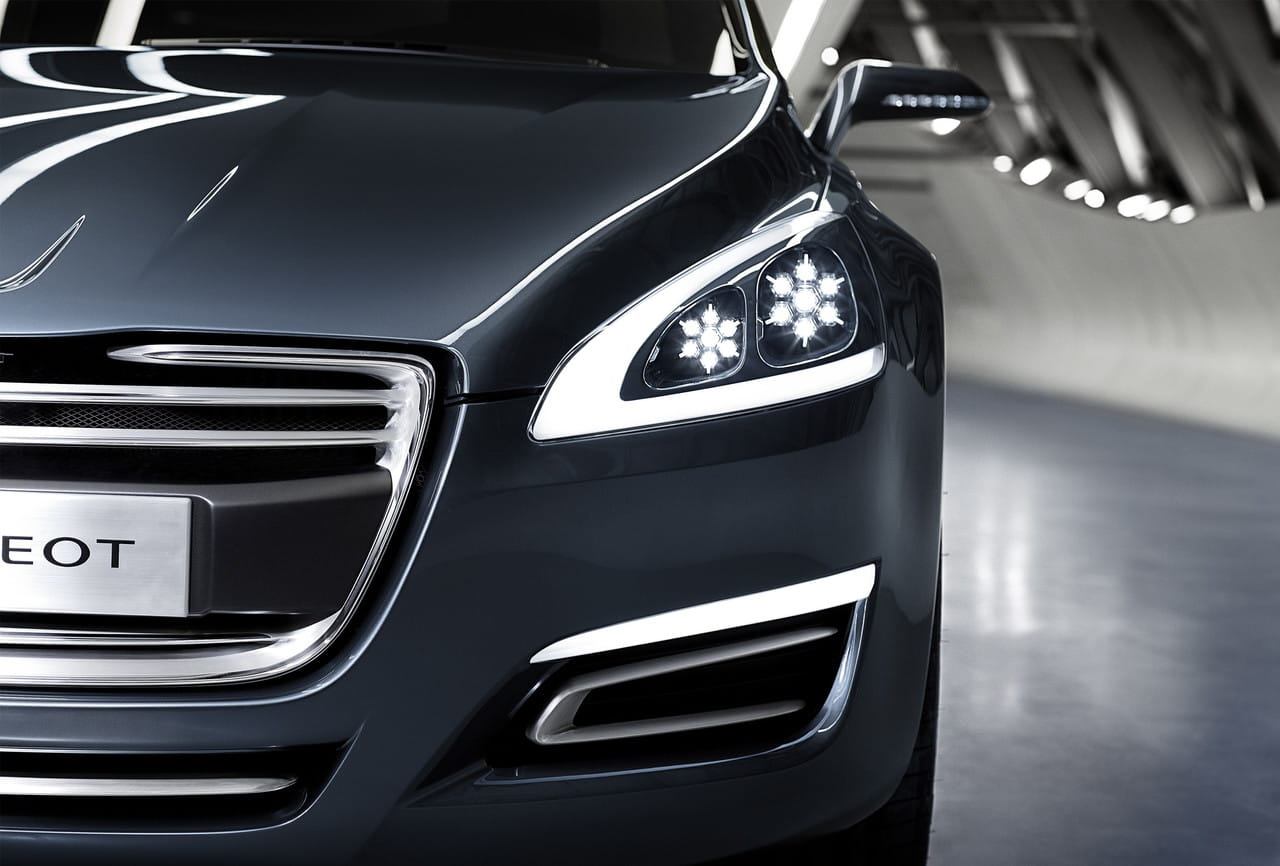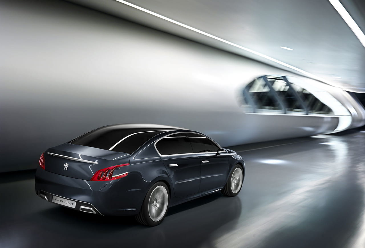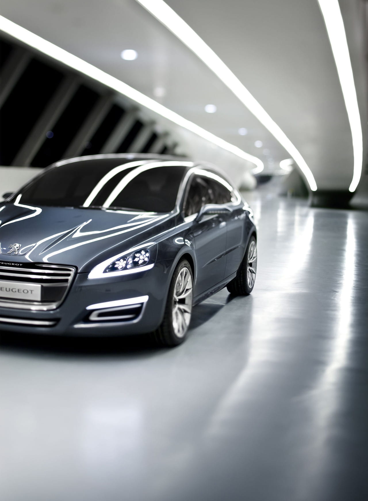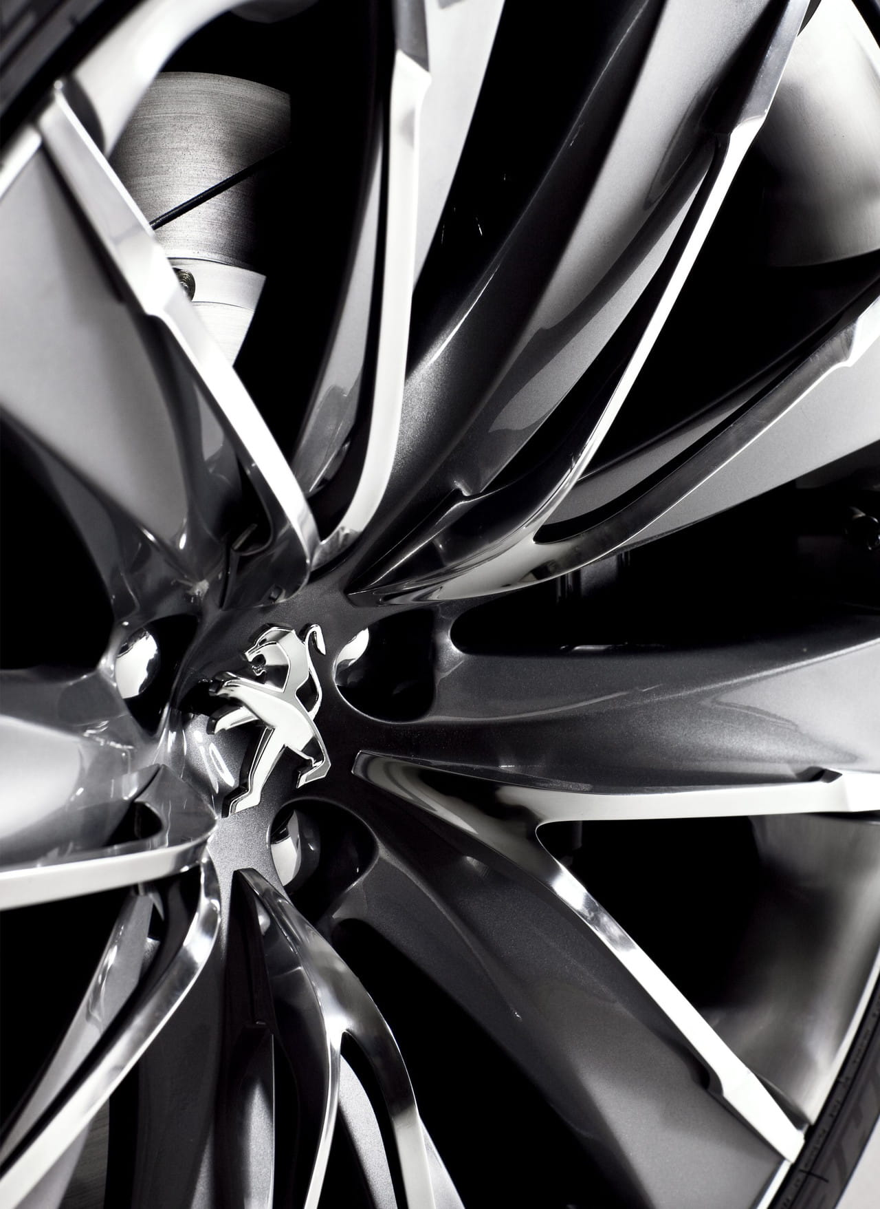 El frontal destaca por una “boca” más pequeña y angulosa, flanqueada por afiladas ópticas LED, no sólo en las luces diurnas, sino en las de cruce y largas también. El capó tiene a la insignia de Peugeot en un pedestal y sus líneas de deriva laterales desembocan en una línea lateral de cintura alta. Unos pequeños retrovisores y grandes llantas adornan un perfil lateral de una elegancia jamás vista en PSA. Un perfil lateral ascendente que limita las dimensiones del habitáculo a las de uno de los llamados coupé de cuatro puertas.
