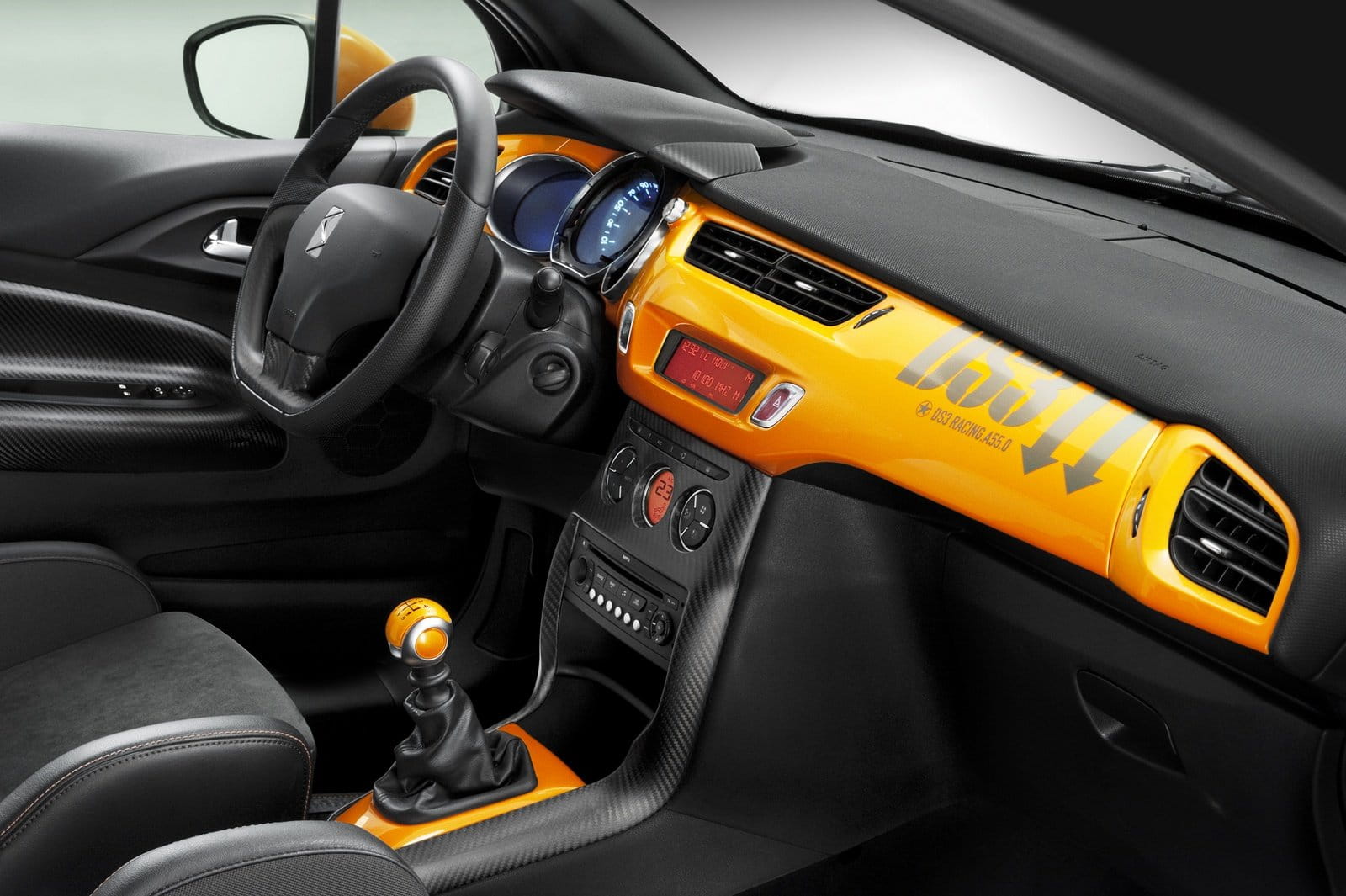 La personalización especial de esta versión Racing también abarca al interior, con detalles en carbono en el frontal del salpicadero, embellecedor del volante o reposabrazos de las puertas. Por otra parte, el color naranja continúa presente en la banda central del salpicadero o en el pomo de la palanca de cambios. Los asientos deportivos, especialmente envolventes, tienen el logo bordado de Citroën Racing en los respaldos.
