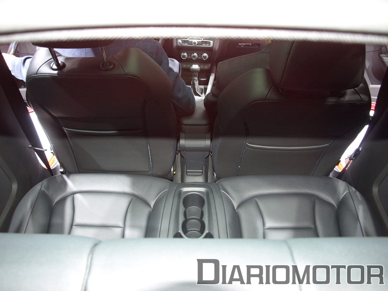 El diseño de las plazas traseras es uno de los aspectos que más discutiría. Parece que se salen del tono de los asientos delanteros, deportivos pero justos, y el espacio para los pasajeros no es para dos personas un poco anchas. Son bastante planos en su base y no parece que ello ayude a que se vaya cómodo en un viaje un poco largo. Como interesante complemento tienen un compartimento duro entre ambos para depositar latas de refresco o botellas de agua.