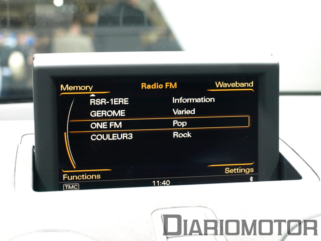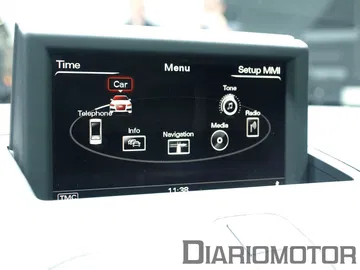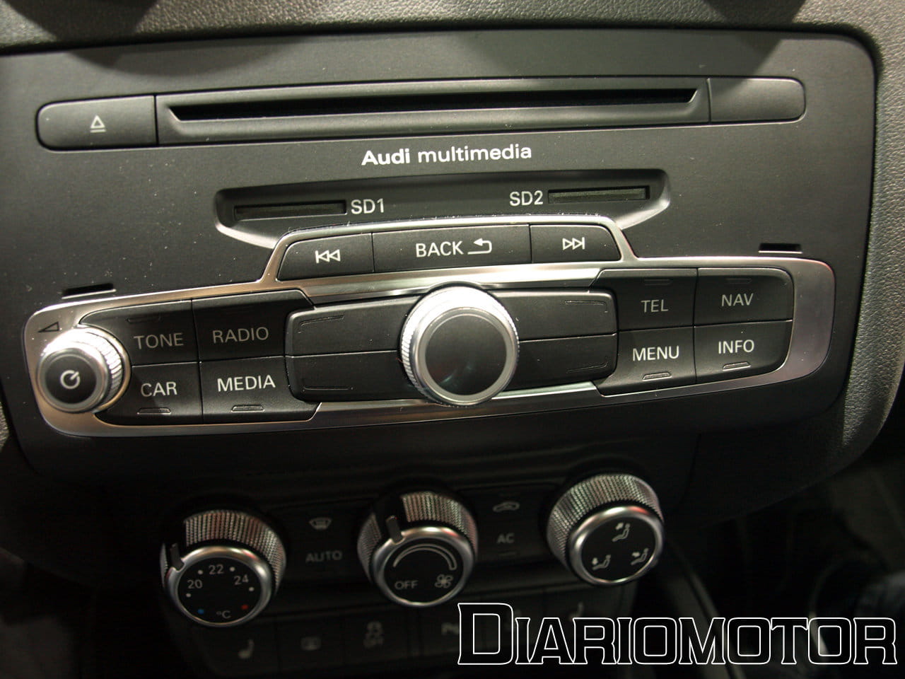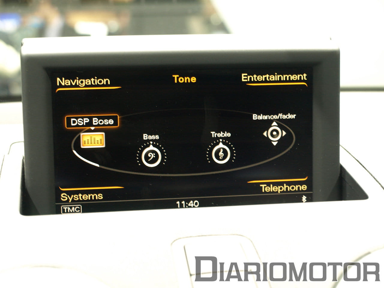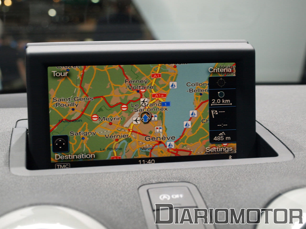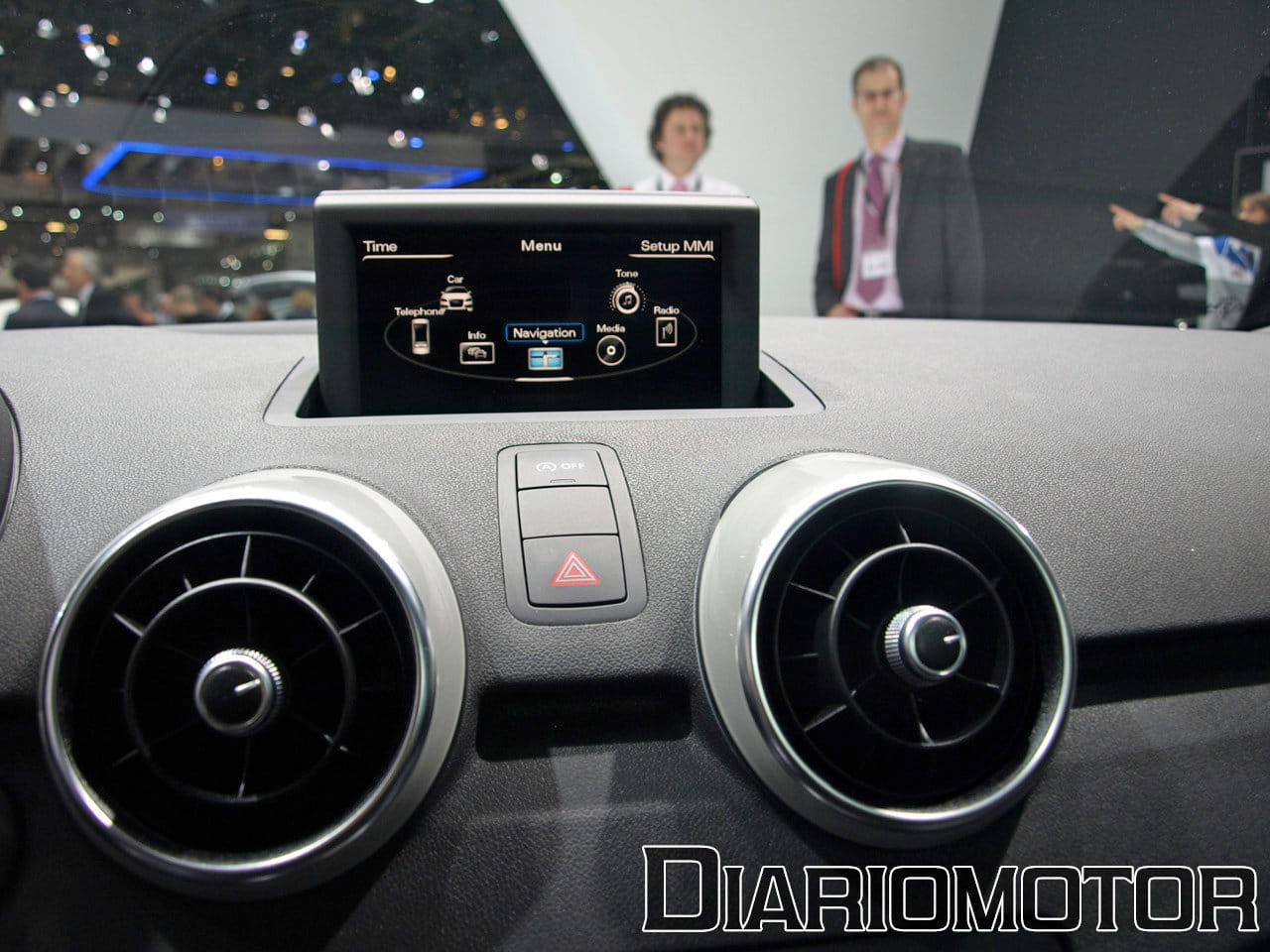 Las funcionalidades más interesantes para los pasajeros se pueden controlar a través de una pantalla que se despliega en el centro del salpicadero y que se maneja desde la botonera de la consola centra, esencialmente con una rueda para moverse entre los menús. Permite controlar el ordenador de a bordo, el sonido, la navegación, etc con una interfaz más que intuitiva y colorista. Los diales que ve el conductor con la velocidad y el tacómetro son los que más le pegan al Audi A1.