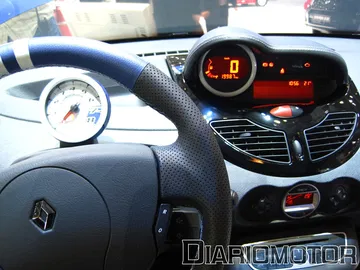 El Twingo RS Gordini ya es otro conocido, y si me lo permitís, más auténtico y fidedigno al espíritu Gordini que el lujoso Clio. Es un coche mucho más pequeño, pero cuyo motor 1.6 de 133 CV no flaquea. La decoración exterior es calcada a la del Clio, pero dentro el diseño del habitáculo marca diferencias. Todo es más sencillo y el panel de instrumentos está dominado por el cuentavueltas, un diseño enfocado que deja el velocímetro en la consola central, junto a los demás indicadores de conducción.