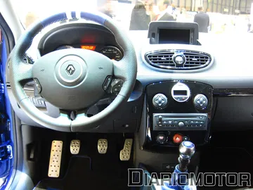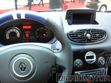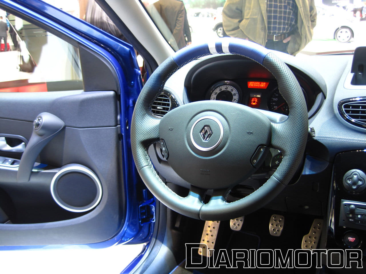 Eran dos de los vehículos más visitados en el stand de Renault, junto al descapotable Wind del que nos ha hablado mi compañero David. Primero abordamos el Clio RS Gordini, una primicia mundial en este Salón de Ginebra de 2010. Estéticamente, lleva unas franjas blancas que cruzan el coche longitudinalmente y algunos emblemas repartidos por la carrocería, además del color azul que caracteriza a estos franceses. Es en el interior donde nos encontramos más a gusto con la personalización.