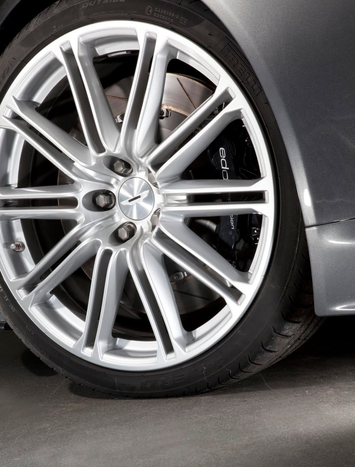 Se queda así a una décima de lograr los 4 segundos de cronómetro acelerando desde 0 hasta los 100 km/h y además puede seguir acelerando hasta alcanzar los 320 km/h. Después de llegar a este imponente límite hace falta frenar y en eso el DBS de edo competition está más que preparador. Lleva unos señores discos de freno perforados de 38 cm de diámetro y pinzas de seis pistones en el eje delantero (a la altura de lo que lleva un tal Koenigsegg Agera). También mejora el comportamiento del chasis mediante una suspensión deportiva ajustable.