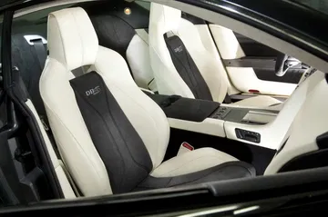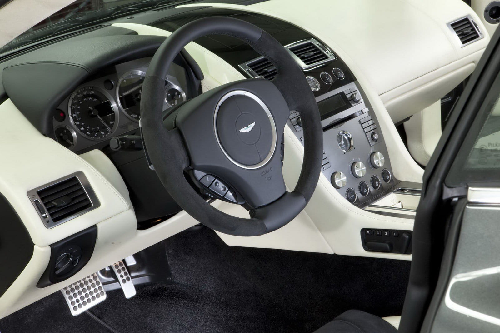 Nos lo presentan como un “DBS” de color negro brillante con unas faldas que extienden su caída hacia las ruedas, sin duda el punto más radical porque son generosas en tamaño (21 pulgadas) y también son de color negro brillante. Estás llantas también las hemos visto en el SLK 55 AMG VÄTH. El aspecto de “coche malo” se queda por fuera: “lo que importa está en el interior”. Lleva piel de color blanco y Alcantara en un tono gris oscuro, da ganas de acariciar los asientos con mucho cariño.
