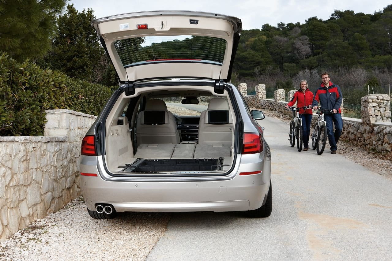 BMW alude a las facilidades que tendrá el usuario a la hora de cargar y descargar bultos, por ejemplo, la cortinilla que cubre el maletero se desplaza automáticamente por unos carriles de manera muy sencilla. Hay un doble fondo en el maletero que permite transportar pequeños bultos o mediante un kit de fijación opcional, transportar bicicletas en posición vertical, desmontando su rueda delantera y fijando la horquilla a unos soportes específicos. Ganchos, redes y carriles de fijación tampoco faltan en este espacio.
