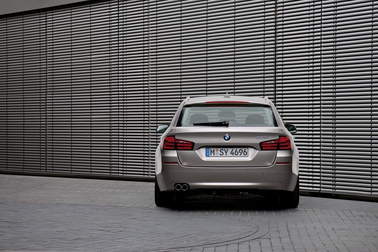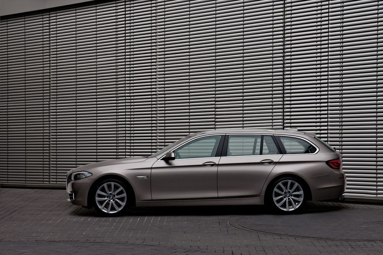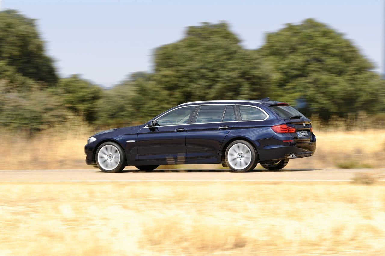 Desde el lejano E34 de 1991 BMW lleva ofreciendo familiares en la Serie 5 y el que tenemos entre manos promete ser el más práctico de todos ellos, amén de el más grande en tamaño y prestaciones. Es un coche grande, que mide nada menos que 4.91 metros de largo, 1.86 metros de ancho y 1.46 metros de alto. El diseño es muy continuista y no arriesga con respecto a su predecesor diseñado por Chris Bangle. La línea lateral es muy limpia y no se quiebra desde el capó hasta la zaga, con gran tensión estética.