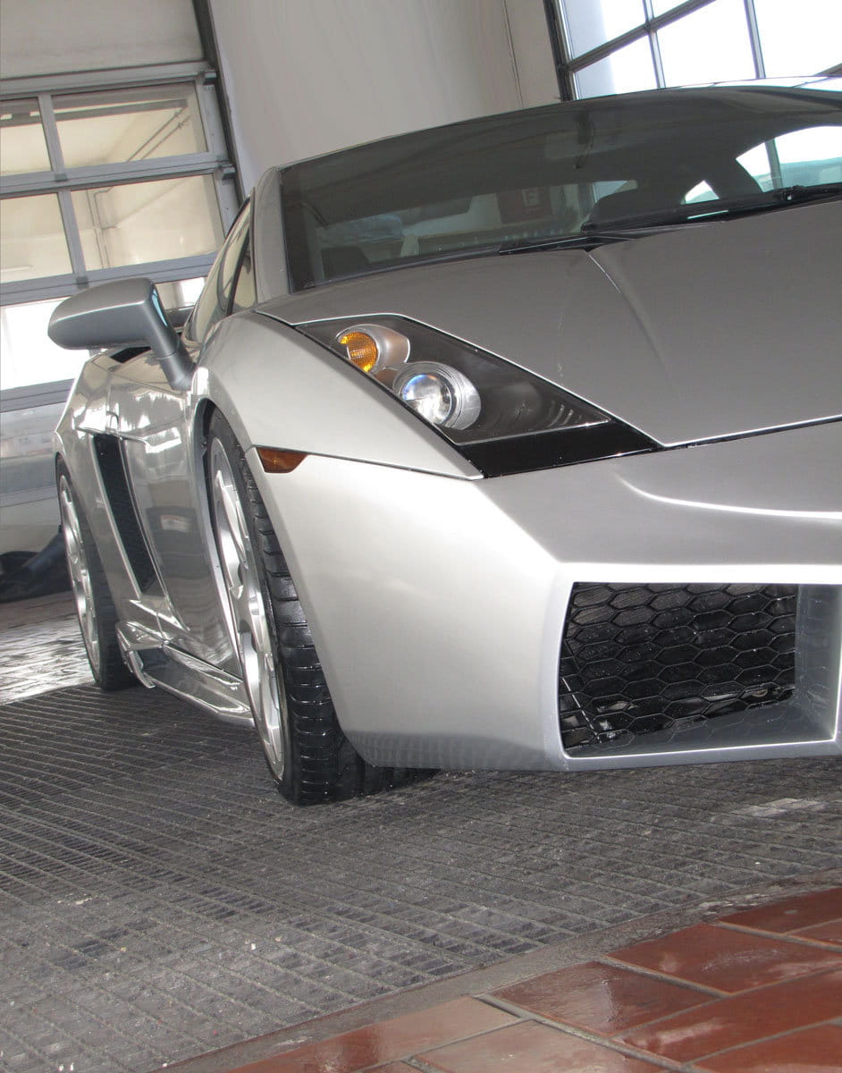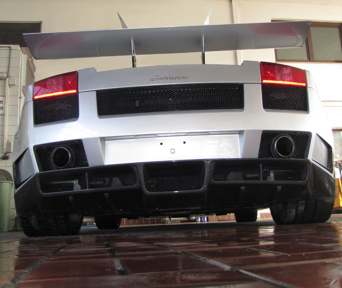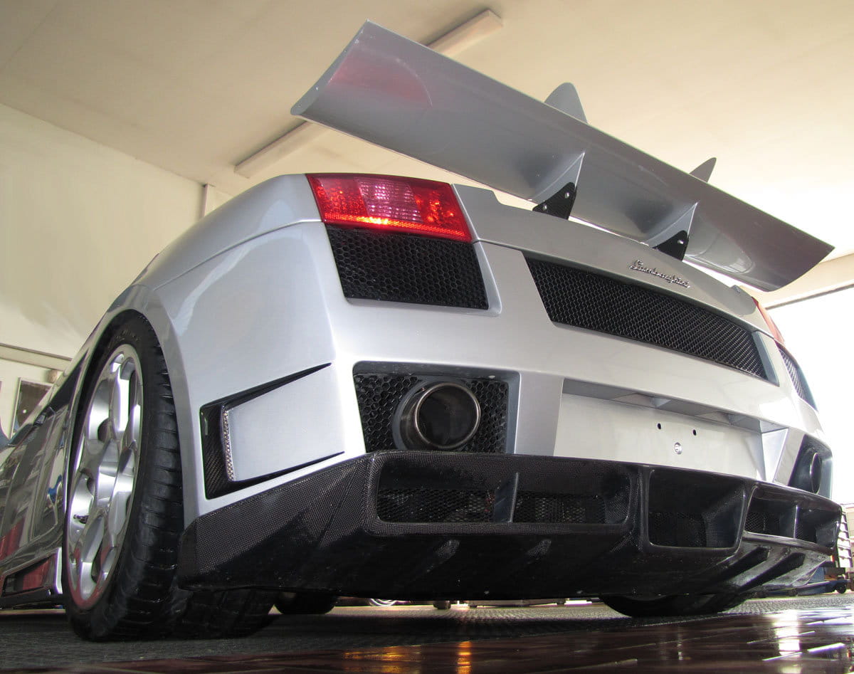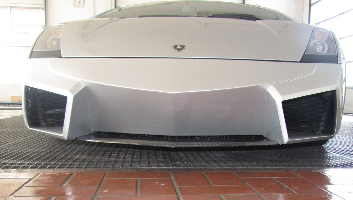 Las piezas aerodinámicas están construidas bien en fibra de vidrio bien en fibra de carbono, a elección del consumidor según lo que esté dispuesto a pagar. Algunos detalles más puntuales como el bajo delantero, las entradas de aire o el difusor trasero están realizados en carbono “satinado” para ofrecer un efecto brillante. El frontal con el kit se parece al del Reventón pero ni las enormes entradas de aire de los laterales ni el alerón elevado “cuelan”.