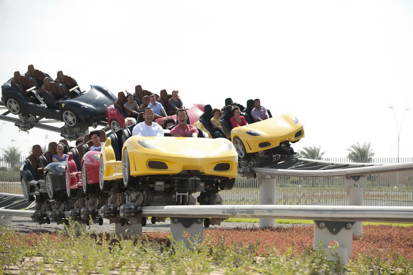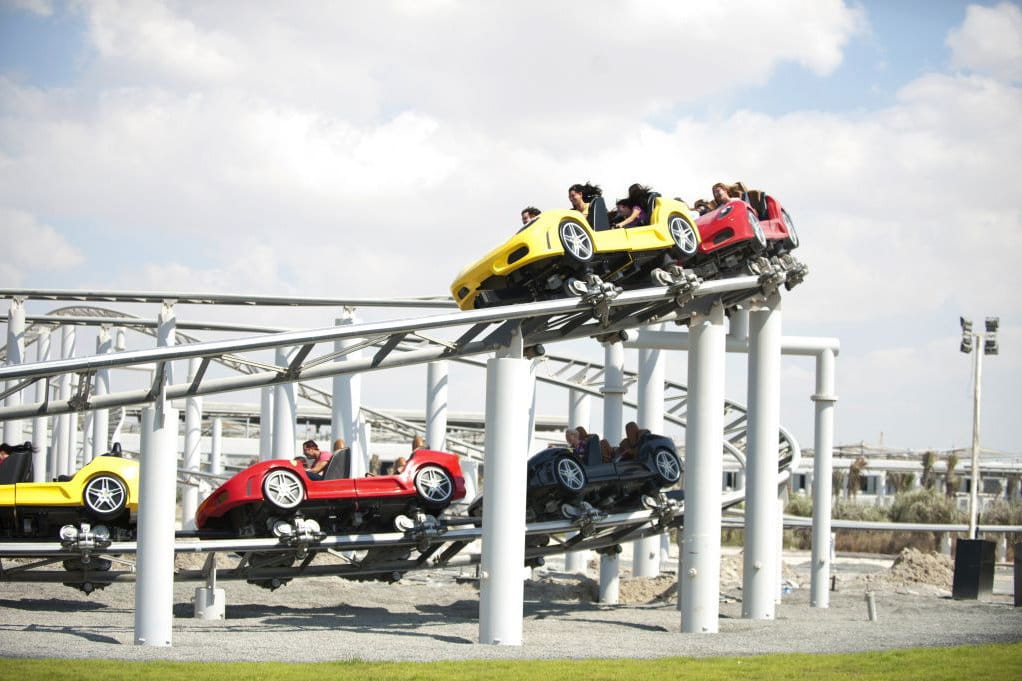Además de las sensaciones propias de una montaña rusa rápida la “GT Racing Coaster” tendrá una parte final en la que dos F430 Spider competirán, simuladamente claro, por llegar antes al final de la pista a través de dos pistas paralelas. Pero esta parte no es la mejor porque habrá una segunda montaña rusa “F1” en la que los pasajeros circularán a velocidades por encima de los 200 km/h y a través de curvas en las que experimentarán fuerzas G considerables, pero razonablemente sanas.