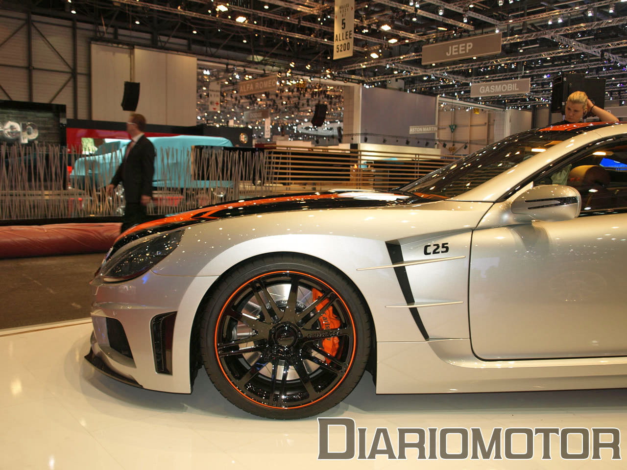 Carlsson ha lucido un stand pequeñito pero ha traído dos auténticas balas basadas en dos Mercedes de por sí ya considerablemente rápidos. La más interesante, la del C25 basada en un SL con el motor V12 de un S600 y 753 CV de potencia. El coche en gris con naranja y negro llama la atención pero por dentro parece que ha dejado de ser un Mercedes.