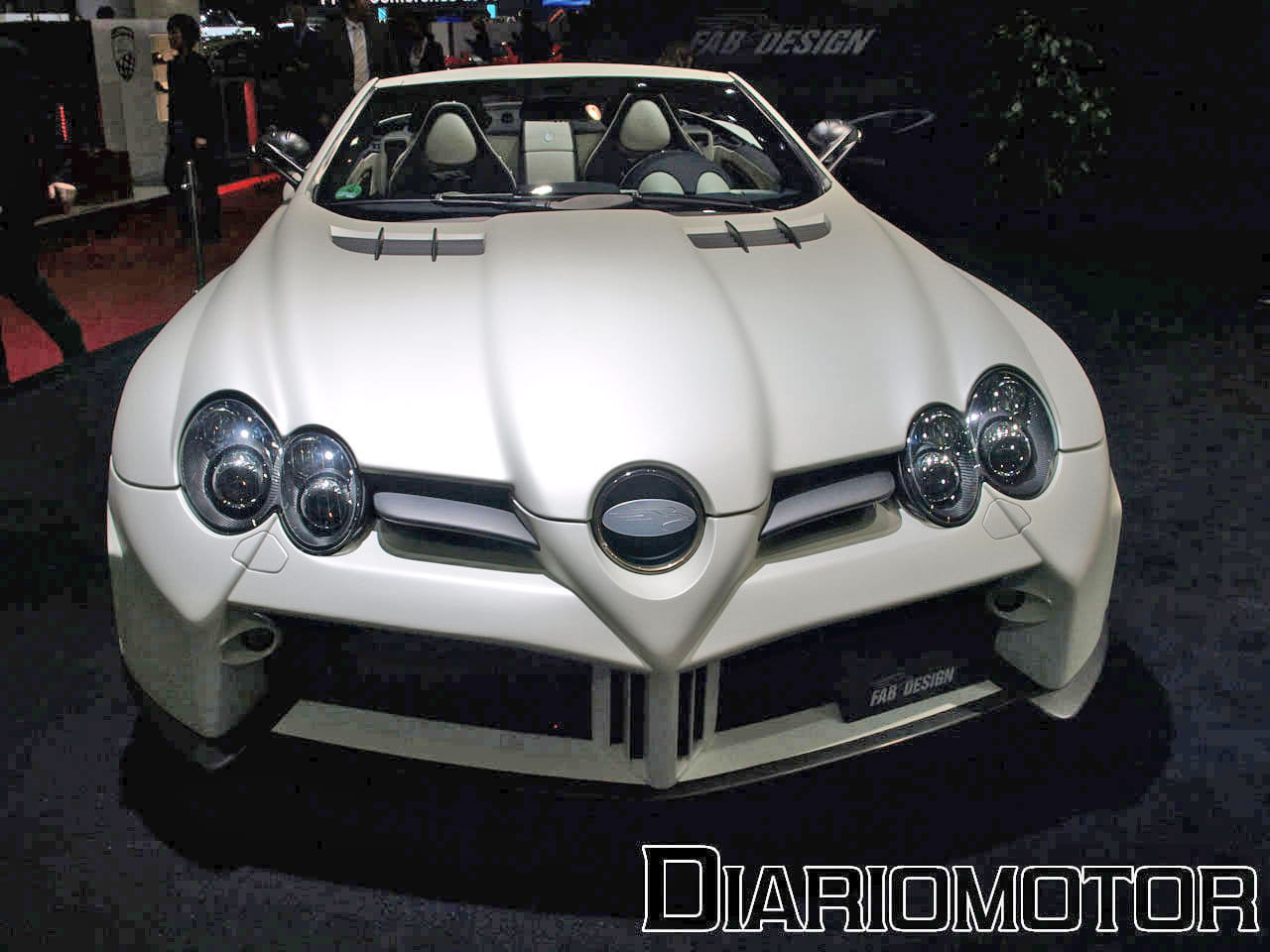 También se han traído una preparación del Mercedes SLR McLaren Roadster nuevamente con el blanco y el negro como protagonistas. Lo ensanchan bastante y sobre todo endurecen, en el sentido visual, el frontal. Al menos el descapotable no llevaba el feo alerón que sí le pusieron al SLR de 750 CV.