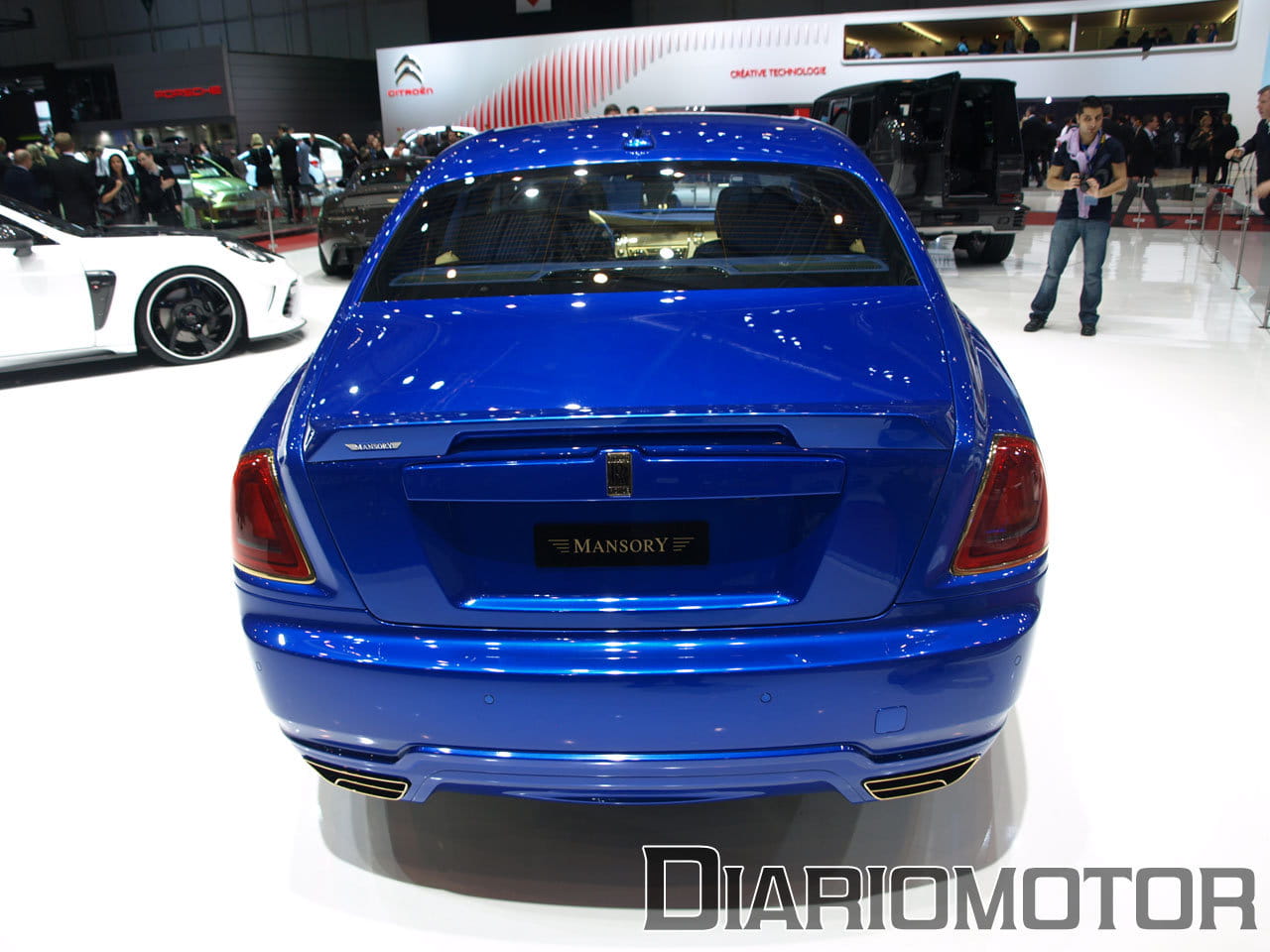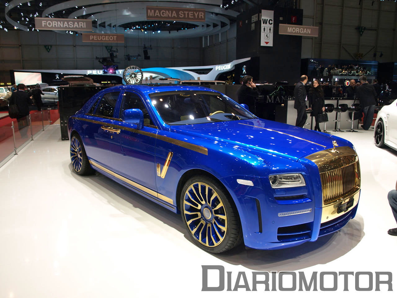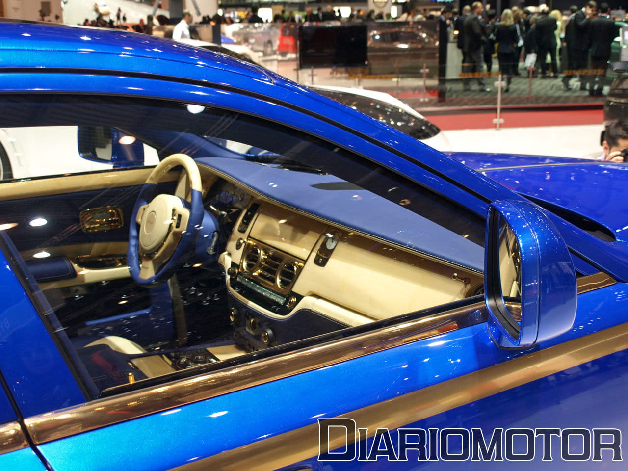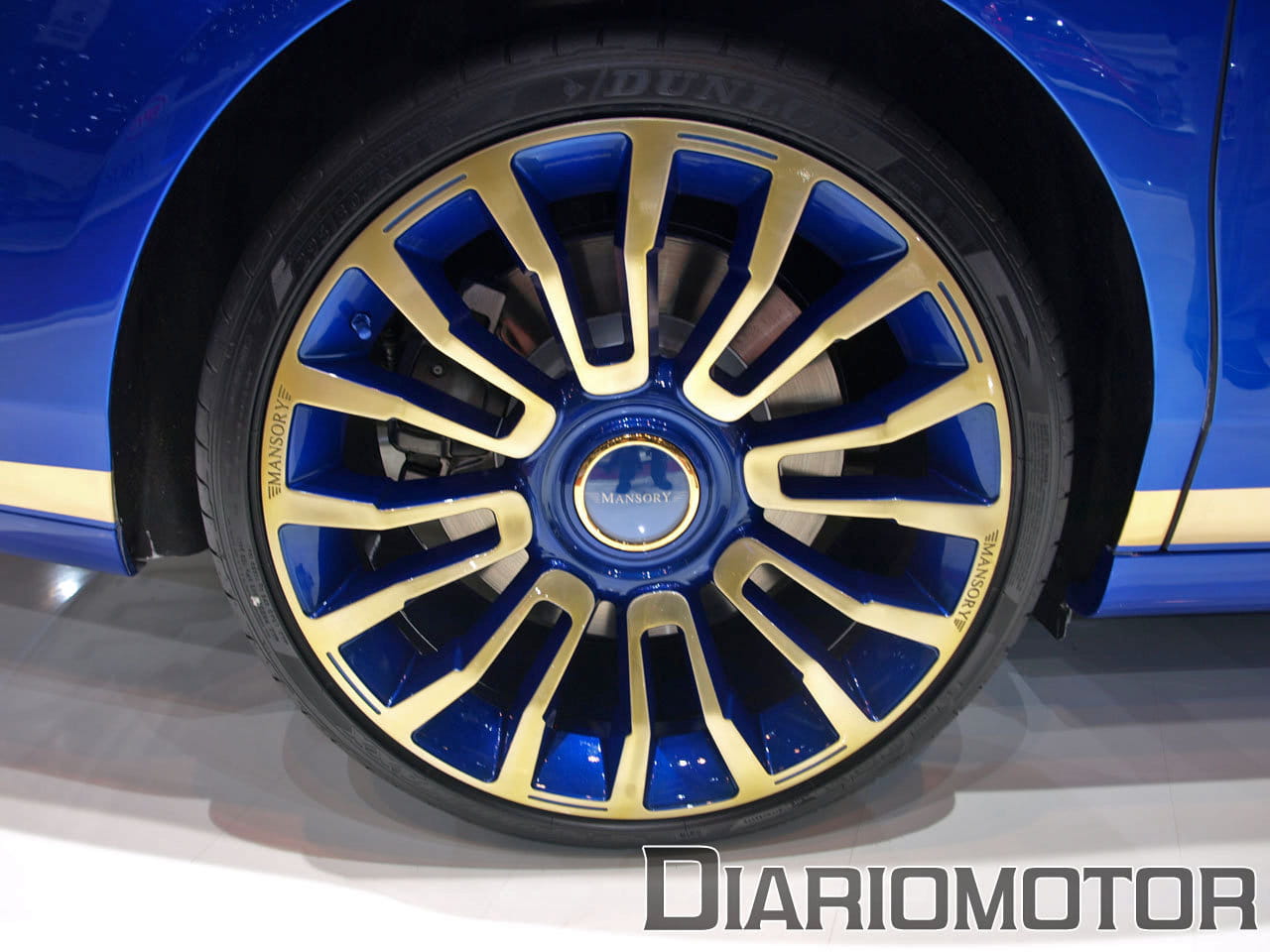 De todo lo que trajo Mansory el tuning más impactante sin duda fue el del Rolls-Royce Ghost, ese que tanto criticamos por ser un Rolls de color azul con un enorme baño dorado. Ni que decir tiene que en directo parece mucho más extraño que a través de las fotografías. Al interior no me dejaron entrar pero sí que pude echarle una instantánea para ver que todos los botones y las manetas estaban cubiertos de un dorado brillante que hasta daba grima.