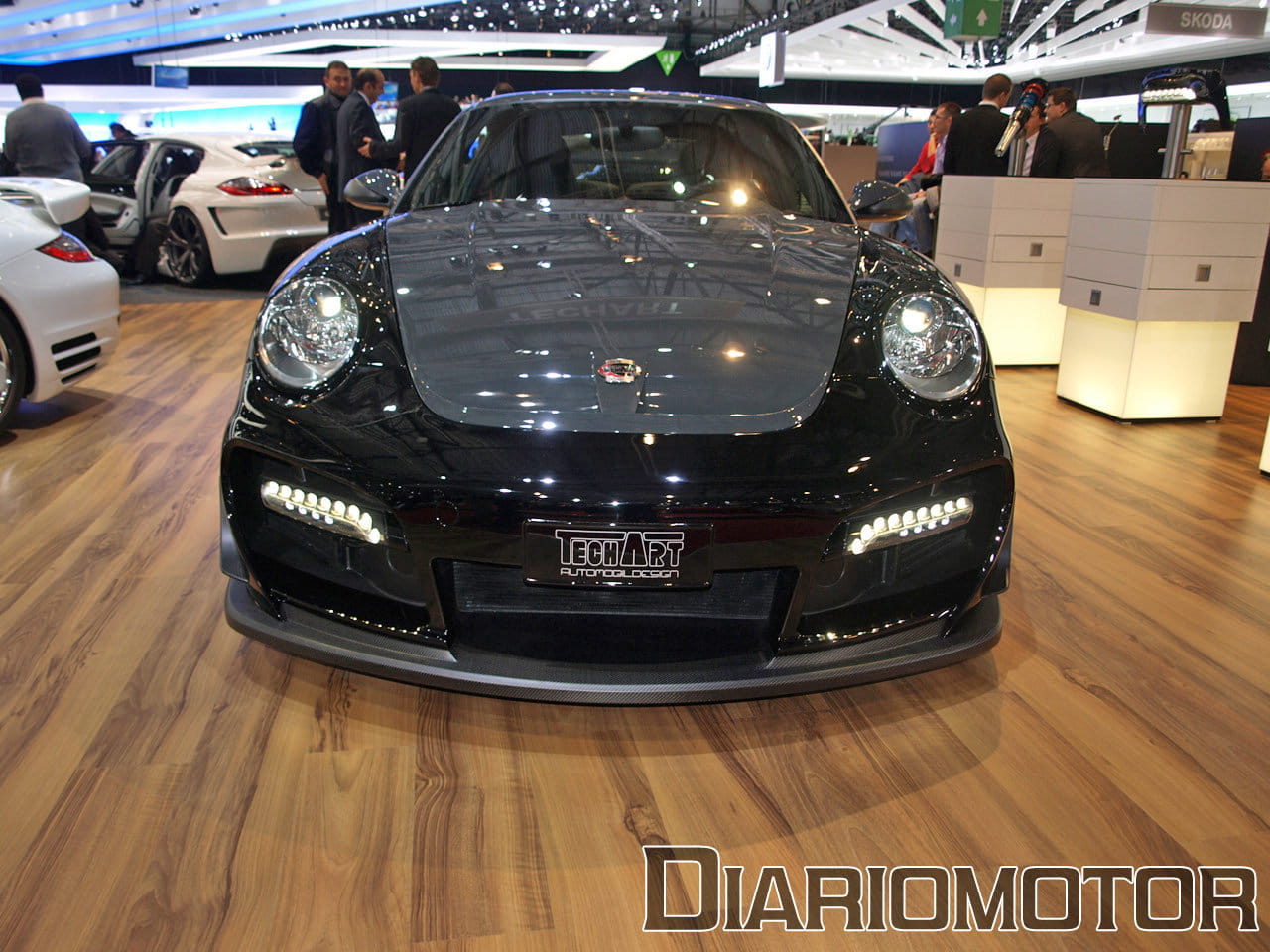 Con TechArt no ha sido fácil encontrar un protagonista que superara al resto, así que lo vamos a dejar en dos. El primero es el GTStreet R, un 911 Turbo negro como el carbón aunque brillante. Lleva gadgets como el famosos sistema hidráulico de elevación y carga además con 660 CV de potencia para no quedarse en corto en arrancadas, adelantamientos ni en nada.