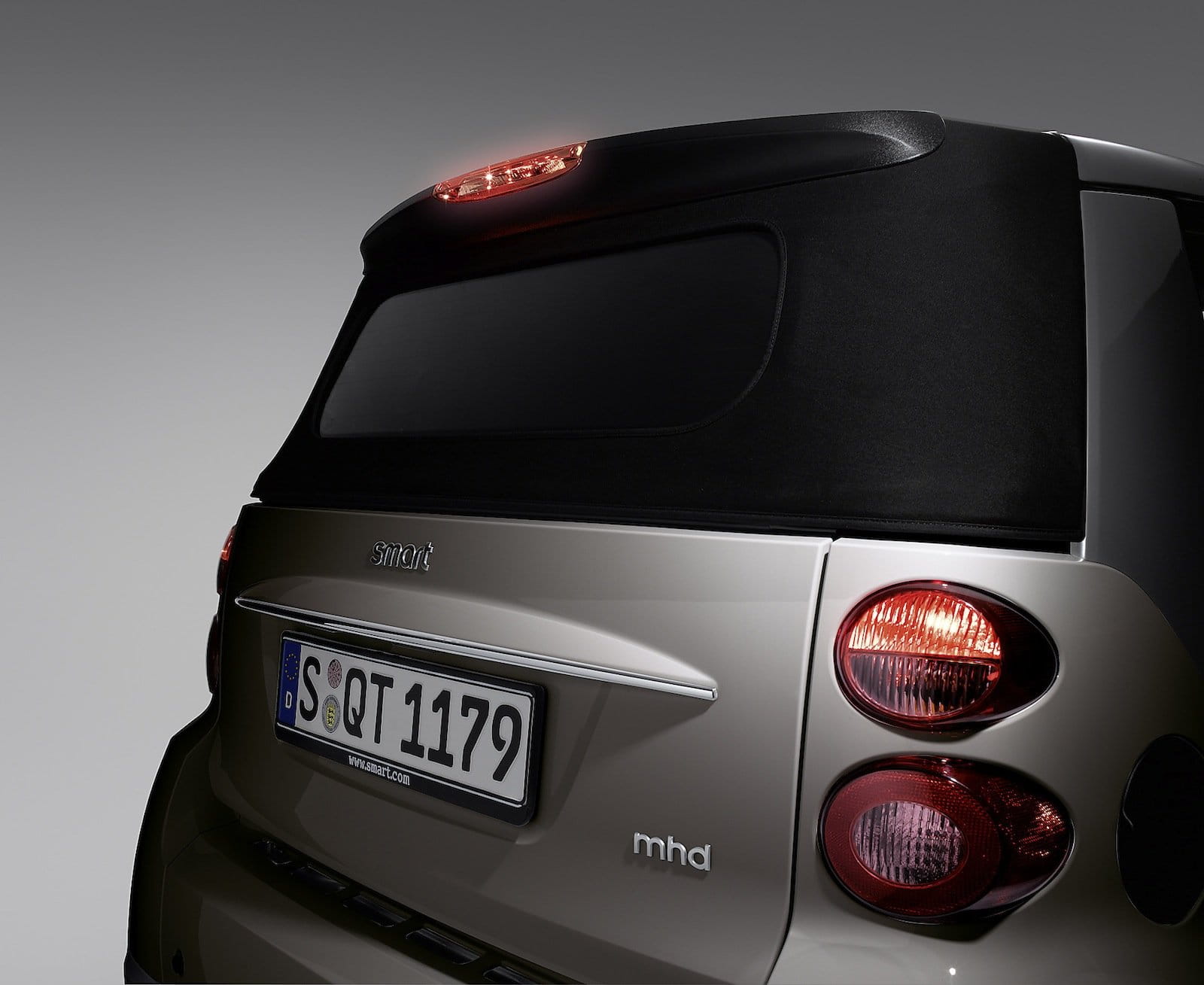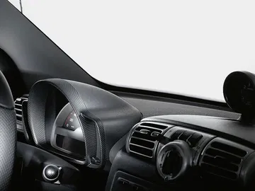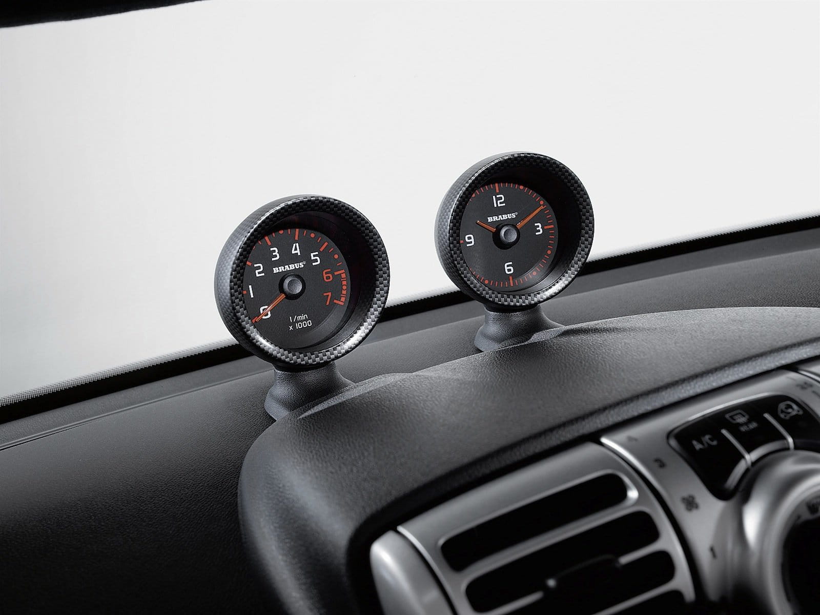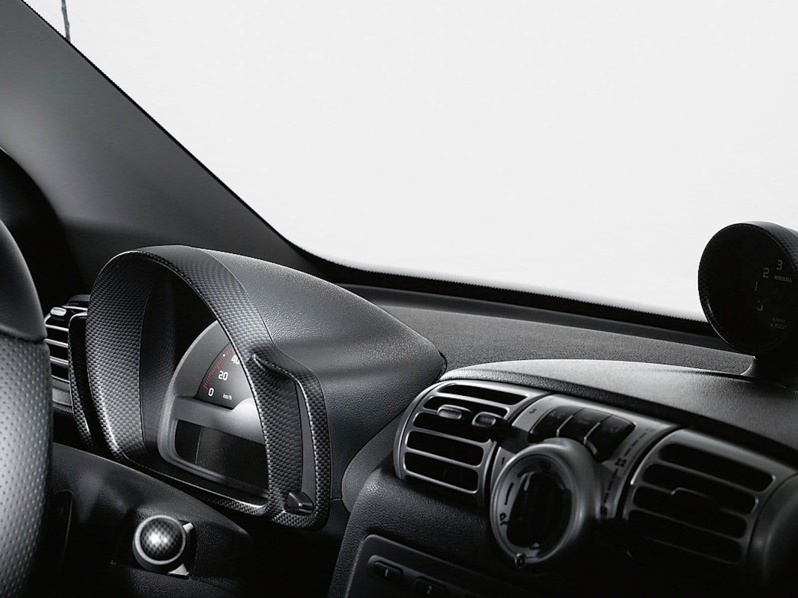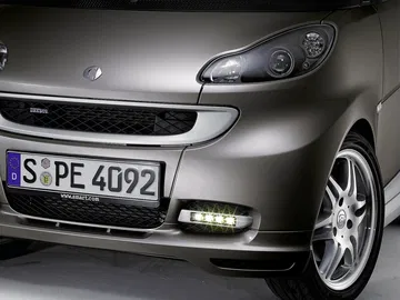 Smart también añade a la enorme lista de opciones del Fortwo una serie de accesorios Brabus en fibra de carbono para decorar en el interior los bordes de los paneles de instrumentos, la consola central o las manetas de las puertas. Le queda bien especialmente al cuentarrevoluciones y al reloj que están en el centro del salpicadero. El otro extra son las luces LED diurnas, que se instalan en el parachoques delantero, y los LED para la luz de freno central.