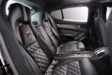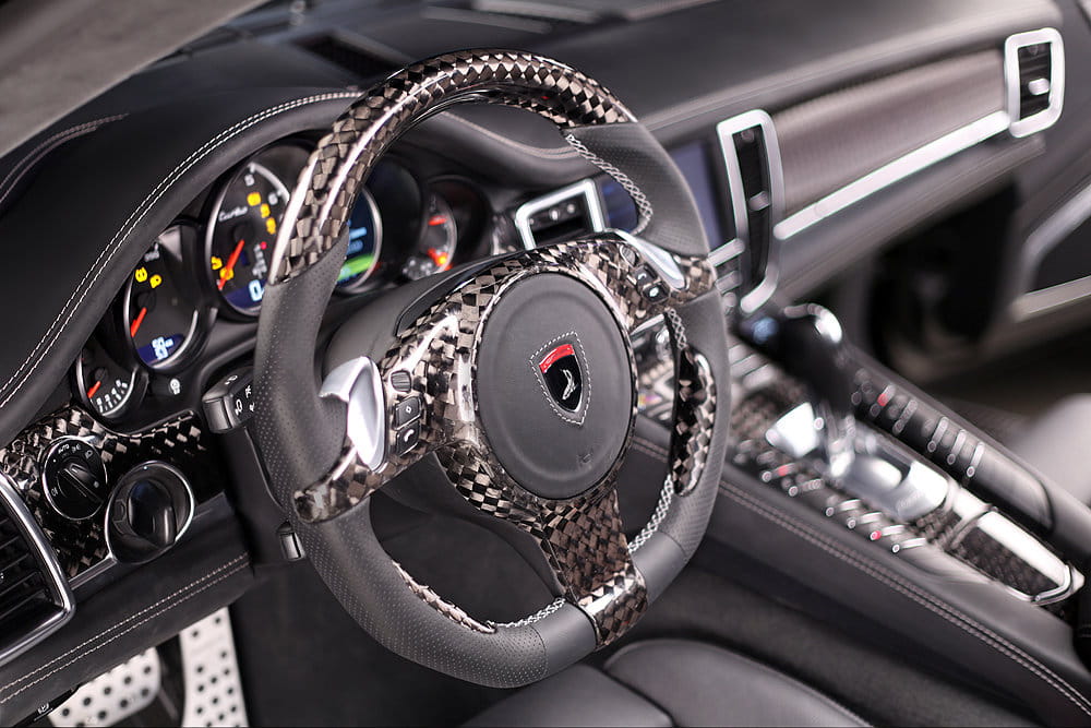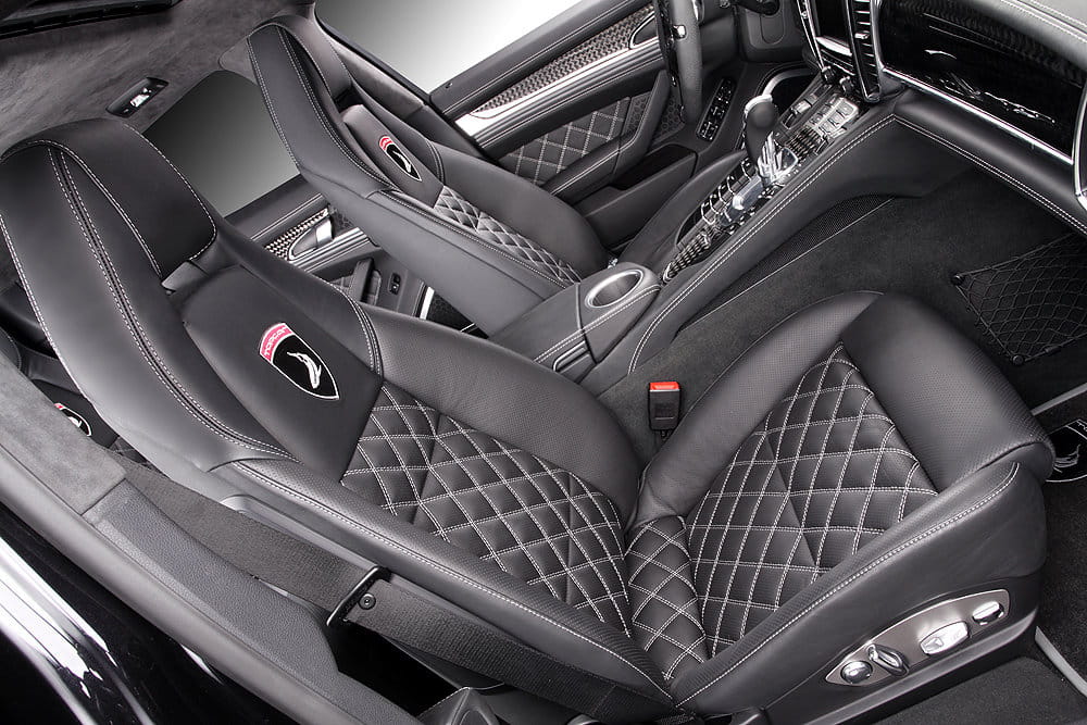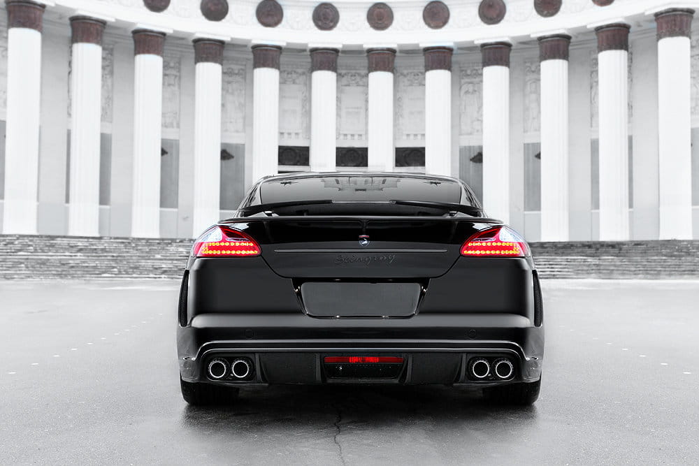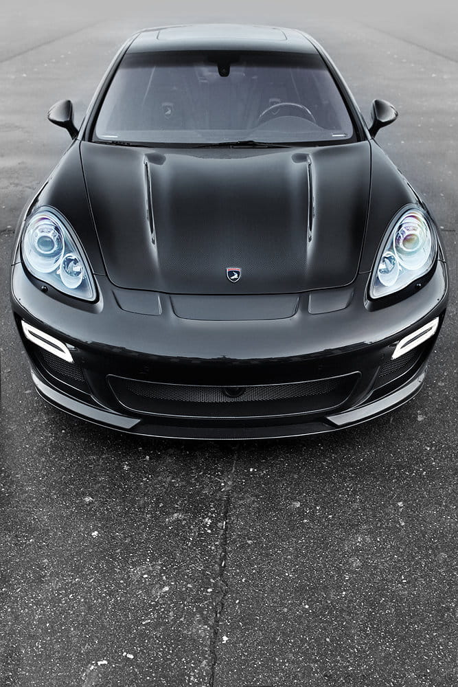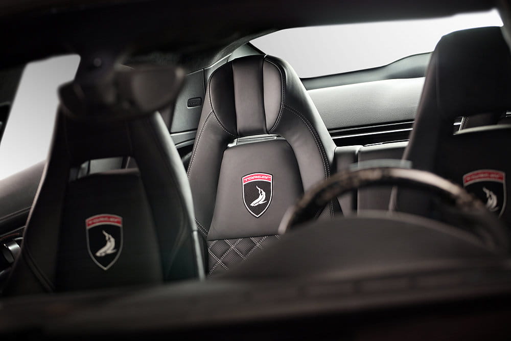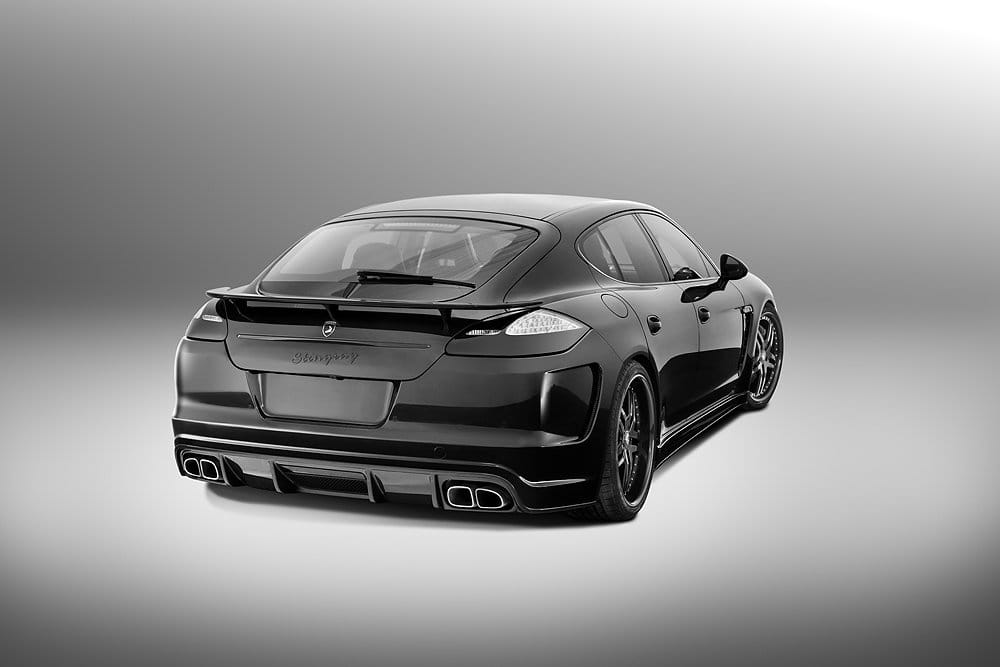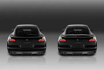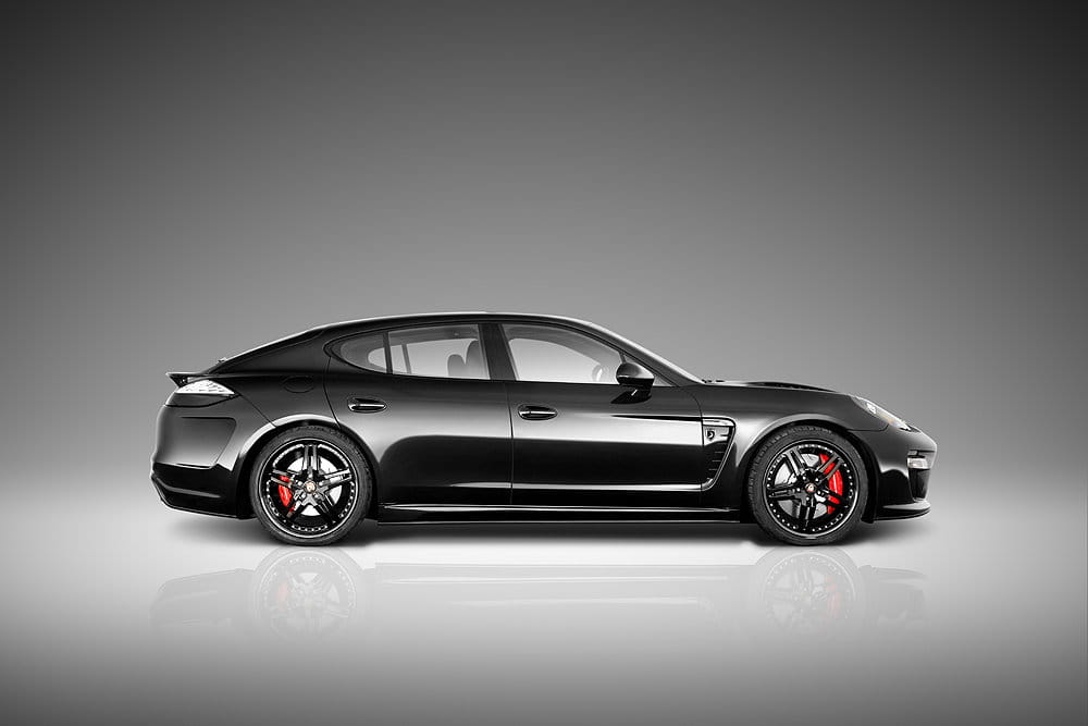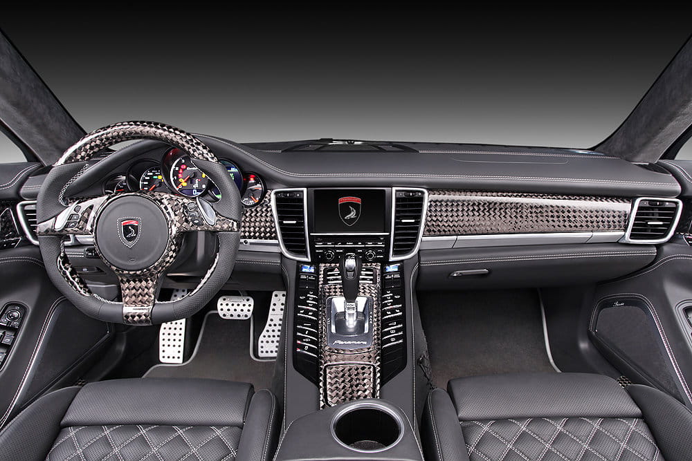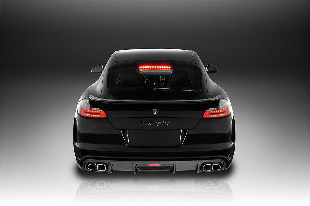 Además de la preparación aerodinámica y estética, la centralita del motor del Porsche Panamera Turbo ha sido mejorada y se ha instalado un nuevo sistema de escape para conseguir 550 CV de potencia efectiva.