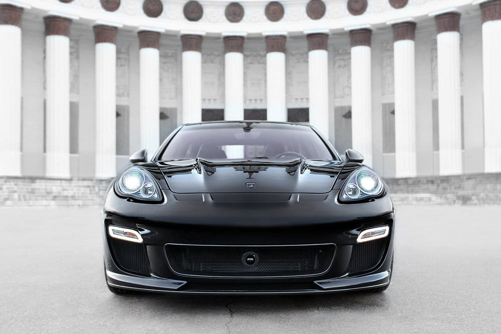El Porsche Panamera Stingray es capaz de combinar lo mejor y lo peor del tuning ruso en un mismo automóvil. Lo mejor probablemente sea el trabajo aerodinámico que lleva encima para conseguir un coeficiente de 0.24, con un discreto alerón ligero, un difusor trasero y un afilado frontal amén de unas suspensiones rebajadas considerablemente, que harán que se pierda en practicidad para mejorar el dinamismo en pista.