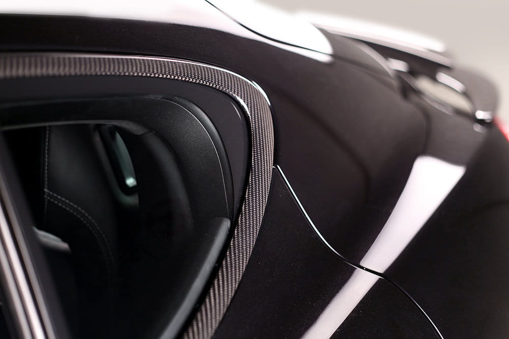 Lo peor probablemente llegue con el excesivo uso de fibra de carbono pulida y abrillantada, que no conformes con emplearlo en los apliques del exterior y en la tapa del capó, también han generalizado su uso en el renovado habitáculo y especialmente en el salpicadero, el volante y los paneles de las puertas.