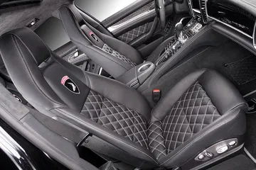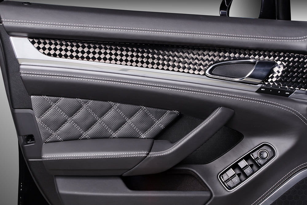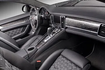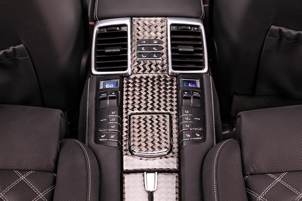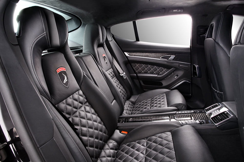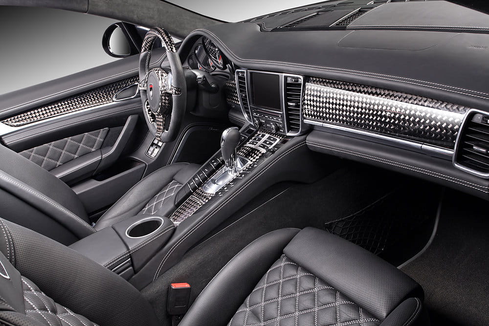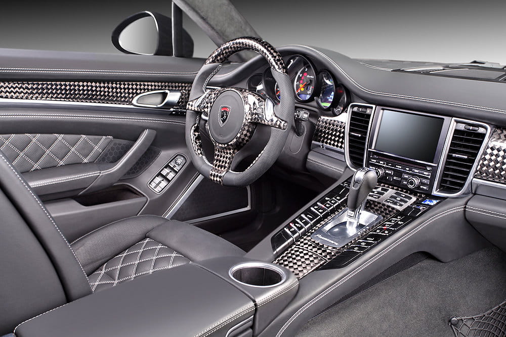 Salvando las distancias y al menos visualmente, me gusta incluso más la imitación de fibra de carbono del salpicadero del Fiat Bravo. Habiendo tenido la oportunidad de subir en el acogedor habitáculo de un Porsche Panamera de serie, con su tapizado de piel color crema, la verdad es que al ver las imágenes del interior de esta preparación solo me dan ganas de llorar.