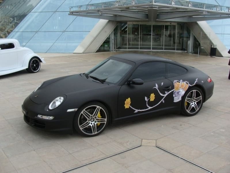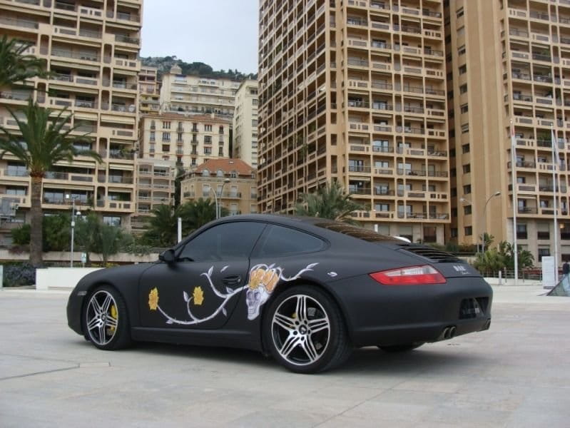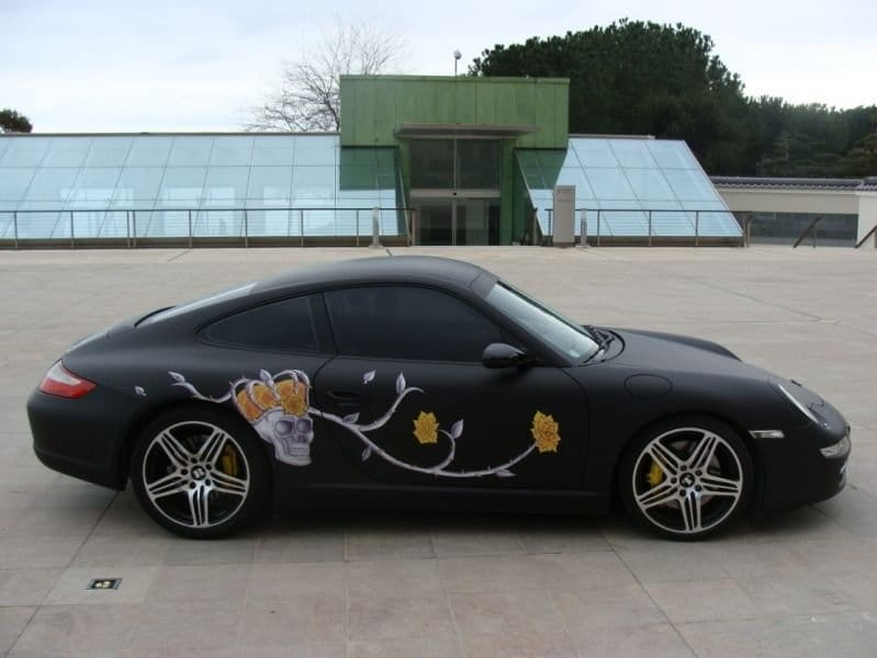 El 911 en sí es bastante peculiar con un color negro mate y esa calavera sonriente, que no sé a qué me recuerda. Llamar la atención la llama aunque seguro que al tacto debe despertar muchas caras de sorpresa.