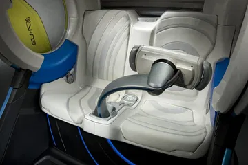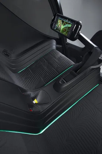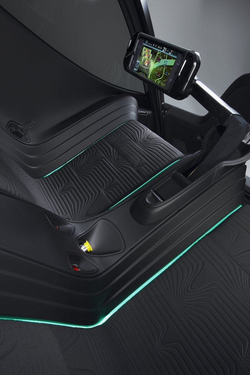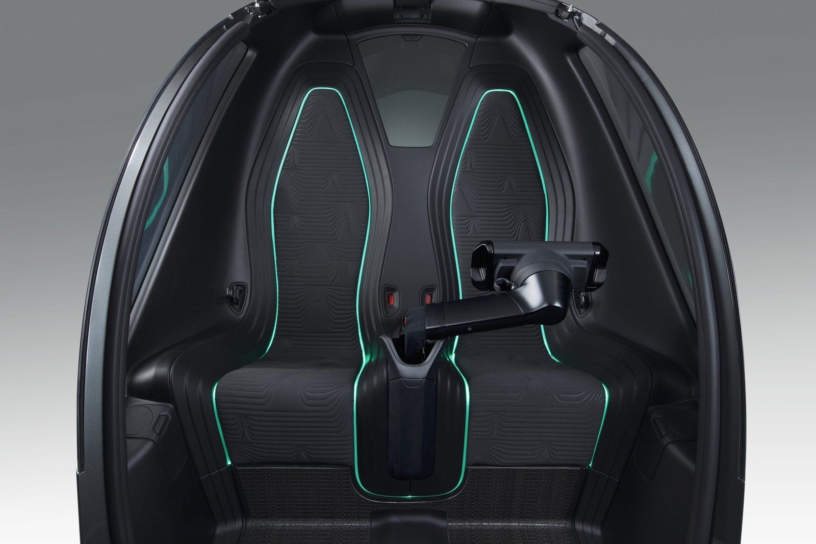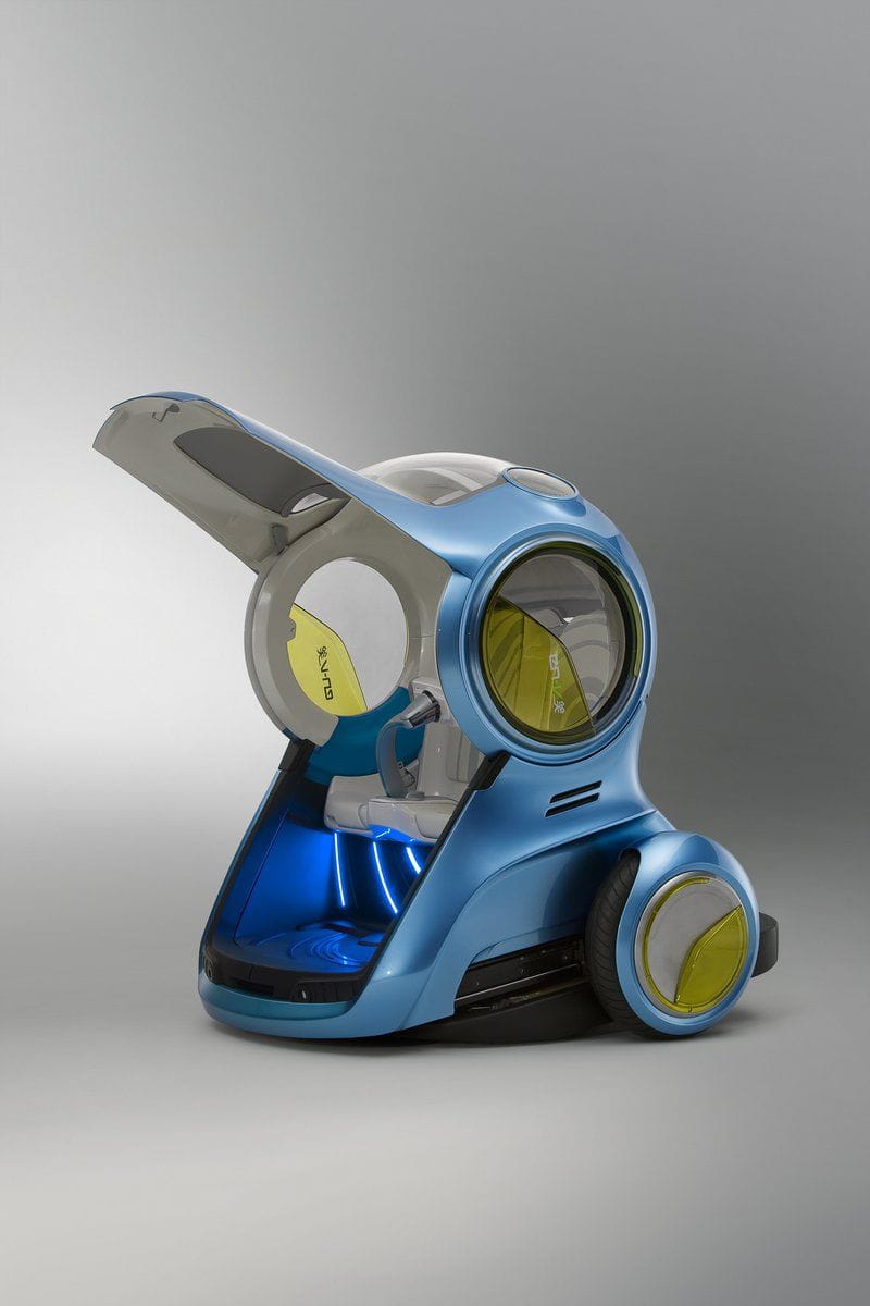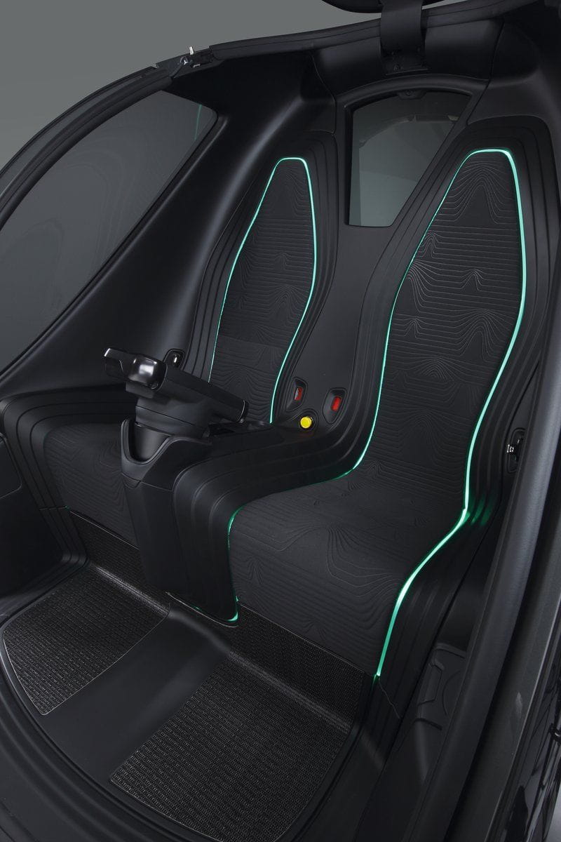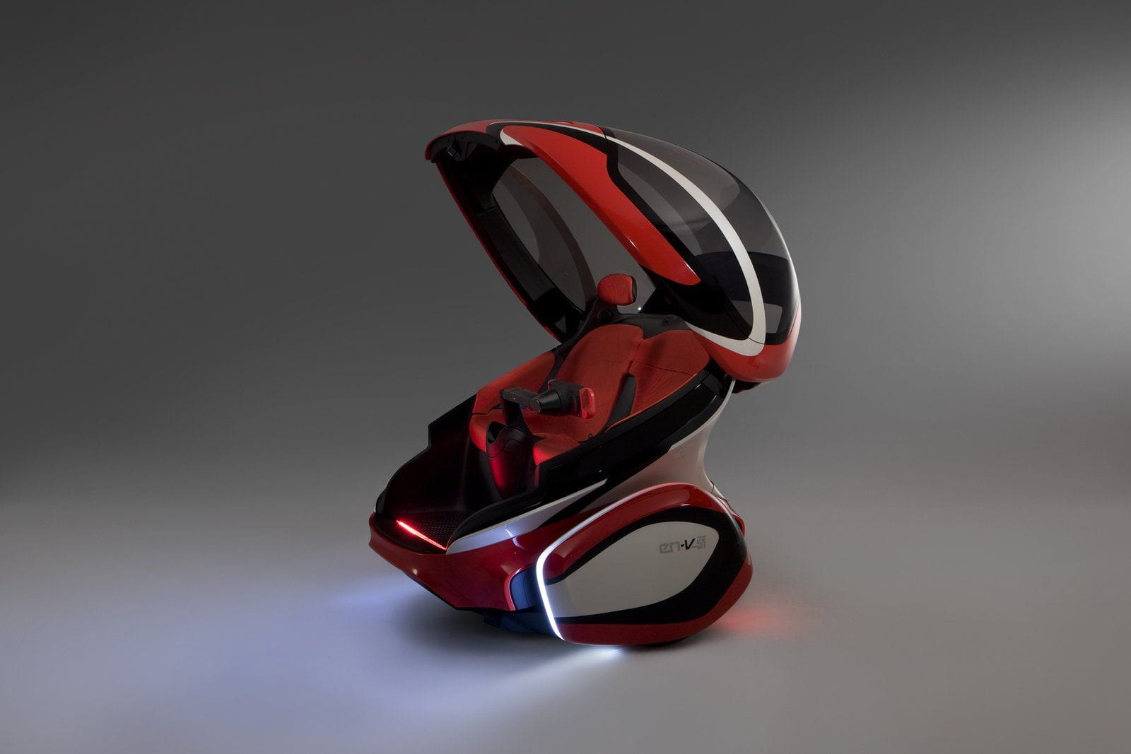 Su diseño recuerda vagamente al “comecocos” porque el acceso al EN-V se hace a través del frontal, que se levanta tal cual la boca de “Pacman”. Una vez en el interior hay dos asientos y un brazo en el que se sitúa la consola de mando, que puede ser orientada hacia cualquiera de los asientos. GM nos enseña fotos en el que la cápsula y el interior varían, de tapizados y de colores, lo que quiere decir que la personalización es un elemento que no se olvida.