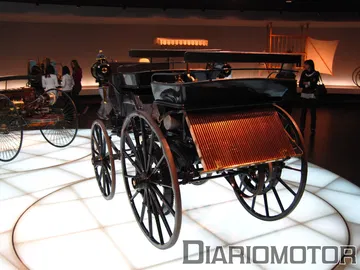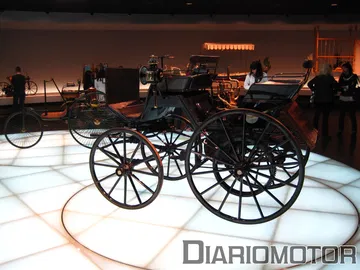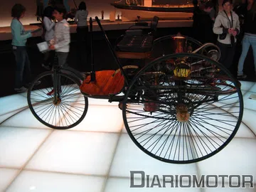 La historia de Daimler y Mercedes es la historia del propio automóvil, desde su absoluto comienzo. Comenzamos por una maqueta de un caballo, y una cita del Emperador de Alemania a finales de la década de 1880: “Creo en el caballo, el automóvil no es más que un fenómeno transitorio”. Estaba un poco equivocado el hombre. En la primera sala se exponen los primeros vehículos de Benz, el famoso triciclo patentado en 1885 – considerado el primer automóvil del mundo – es el protagonista. Su motor de cuatro tiempos tenía 0.5 CV.