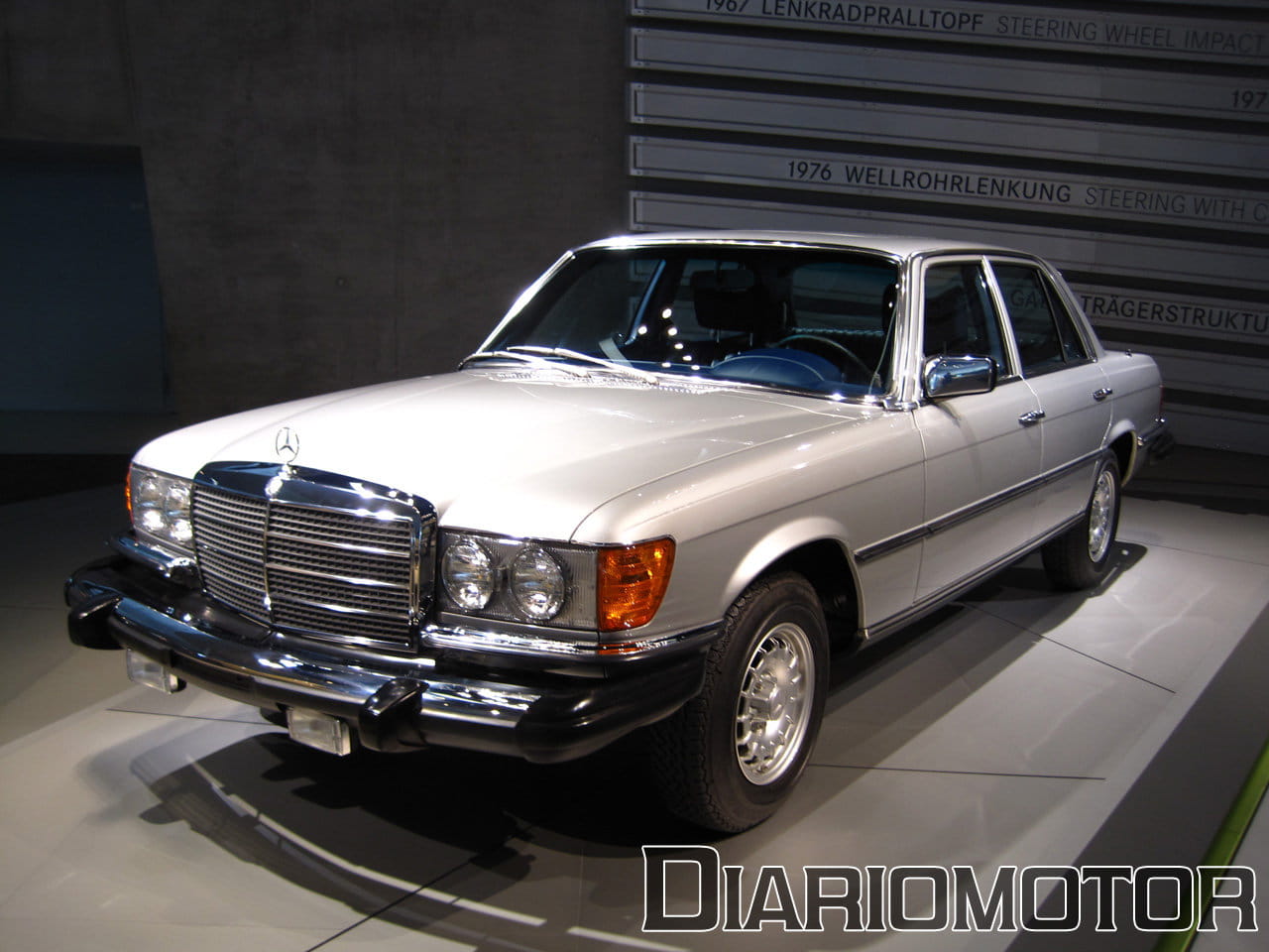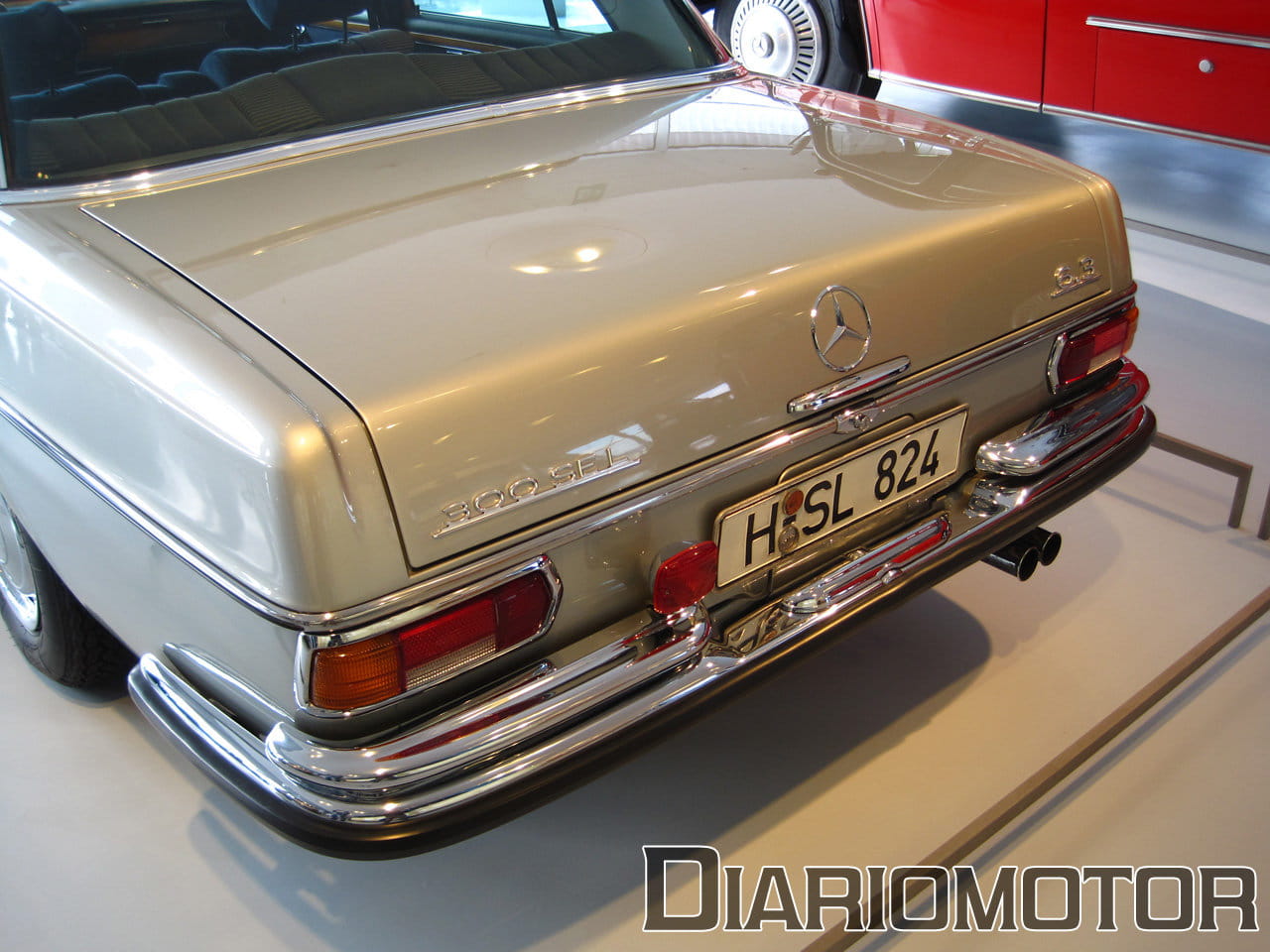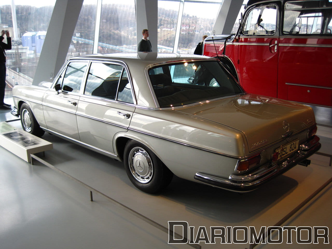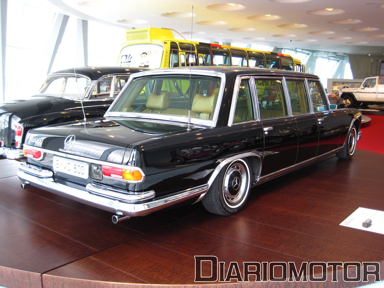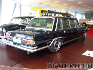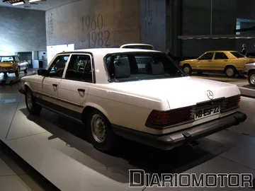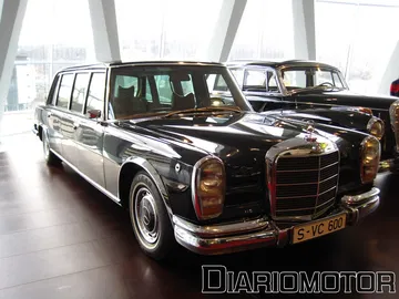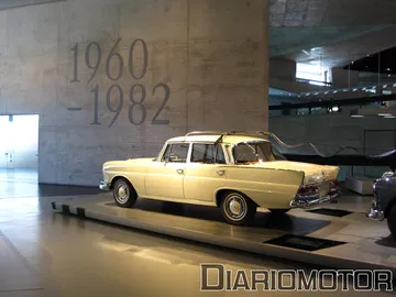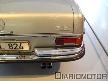 La audioguía explicaba que el coste era el doble de un Mercedes 320 sin esa carrocería. La idea era poder aprovechar las nuevas Autobahn sin límite de velocidad para viajes rápidos, cómodos y sin demasiado consumo de combustible. Es un vehículo del año 1939, y llevaba un motor de seis cilindros en línea y 3.408 cc de cilindrada con 78 CV. Su velocidad máxima era de 136 km/h. Pero sin duda, el protagonista de esta sala es para mí el fantástico Mercedes-Benz 300 SEL 6.3, la unidad expuesta data del año 1972.