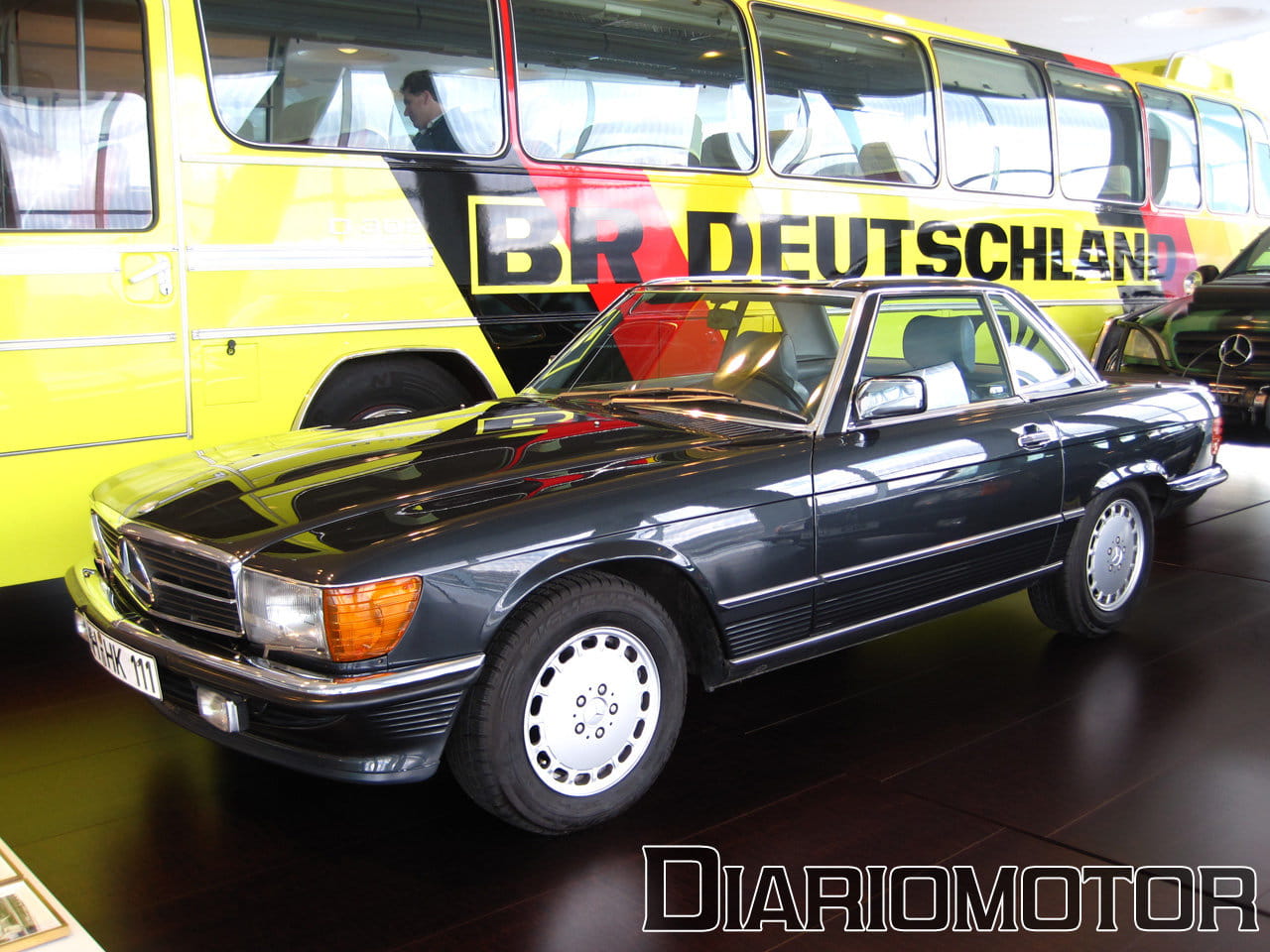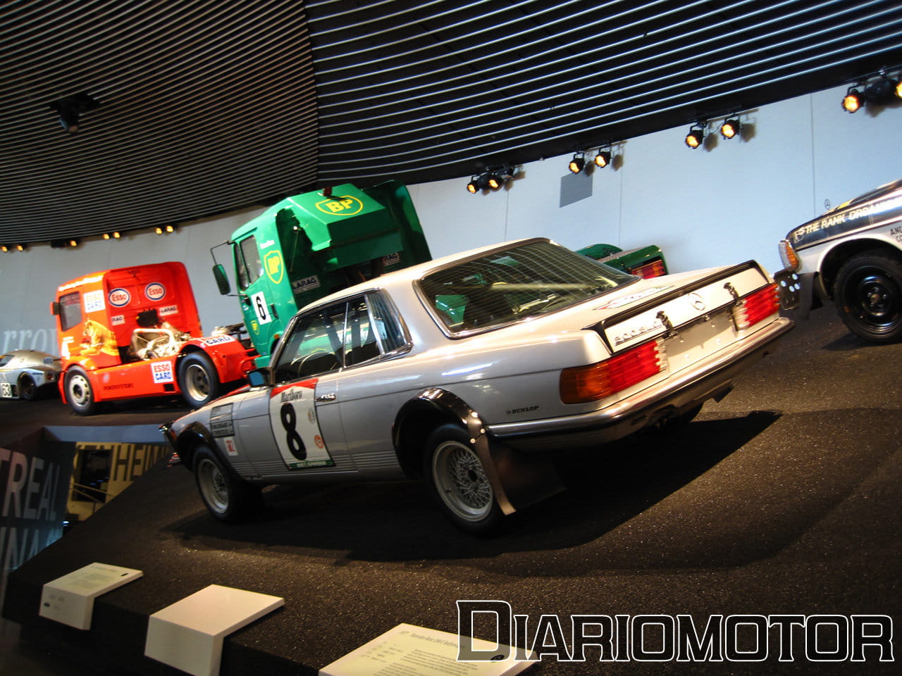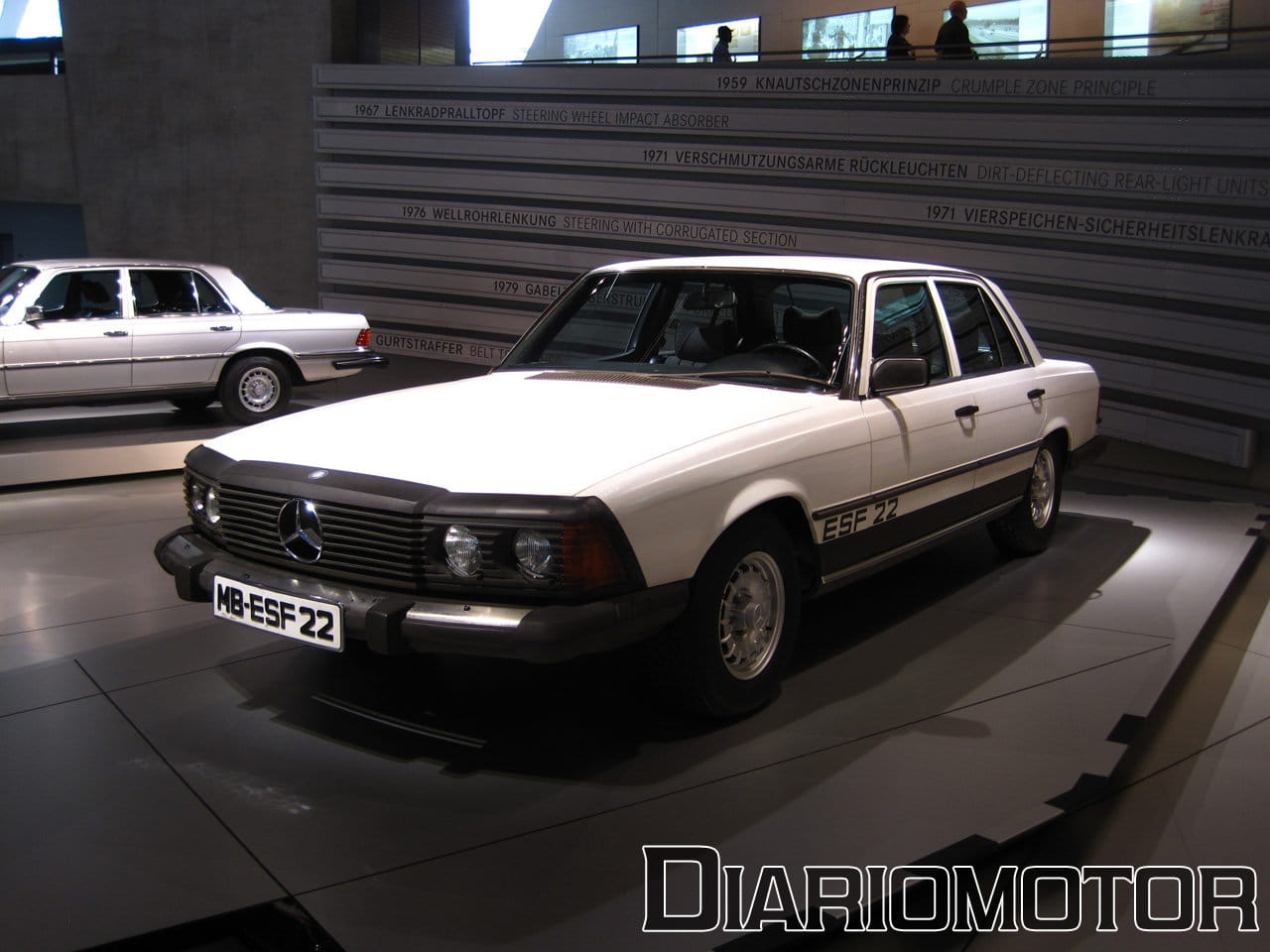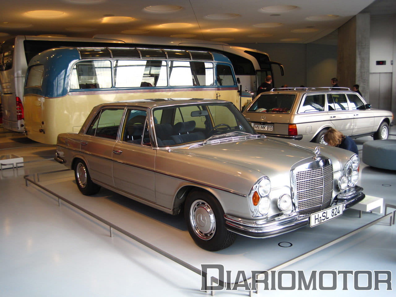La audioguía explicaba que el coste era el doble de un Mercedes 320 sin esa carrocería. La idea era poder aprovechar las nuevas Autobahn sin límite de velocidad para viajes rápidos, cómodos y sin demasiado consumo de combustible. Es un vehículo del año 1939, y llevaba un motor de seis cilindros en línea y 3.408 cc de cilindrada con 78 CV. Su velocidad máxima era de 136 km/h. Pero sin duda, el protagonista de esta sala es para mí el fantástico Mercedes-Benz 300 SEL 6.3, la unidad expuesta data del año 1972.