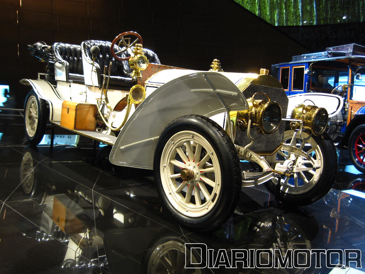 Otros vehículos igualmente impresionantes aquí expuestos son los Benz 18 PS Doppelphaeton, que competían con los Mercedes de Daimler: por aquél entonces Daimler y Benz eran dos compañías rivales, se fusionarían en los años 20 de manera efectiva. Pero quizá el otro clásico más espectacular es el Mercedes 75 PS Doppelphaeton, con su estructura descapotable y sus dos enormes filas de asientos. Su motor de 10.180 cc entregaba 75 CV a 1.300 rpm, suficientes para una mareante punta de 95 km/h. En 1908.