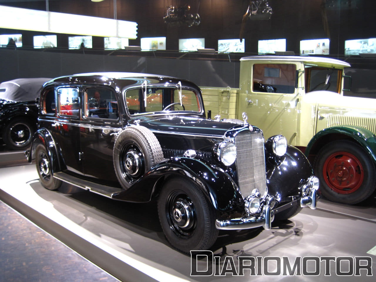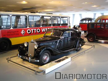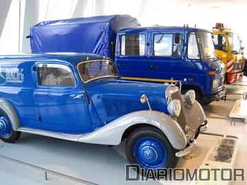 No podíamos irnos de esta sala sin echar un último vistazo al Mercedes 770K Grosser, un descapotable muy opulento de 155 CV, sobre el que Hitler construiría su vehículo oficial. El diésel también jugó un papel importante en esta época, el primer camión diésel de Mercedes se lanzó en 1923, el Lo 200, que cargaba con dos toneladas como mucho y hoy sería considerado poco más que una furgoneta. También estaba presente el 260 D, el primer turismo diésel, del que ya os hemos hablado en profundidad.