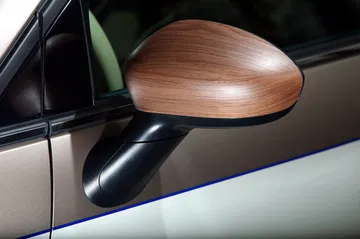 La calidad es la seña de identidad de este trabajo comenzando por las inserciones en madera que hay repartidas por todo el coche desde el exterior, en los retrovisores o en la cubierta de la maneta con la que se abre el maletero, hasta el interior en el salpicadero. Este detalle se complementa con un cuero de dos tonos en marrón chocolate y beige crema que se extiende por las puertas, el volante y los asientos.