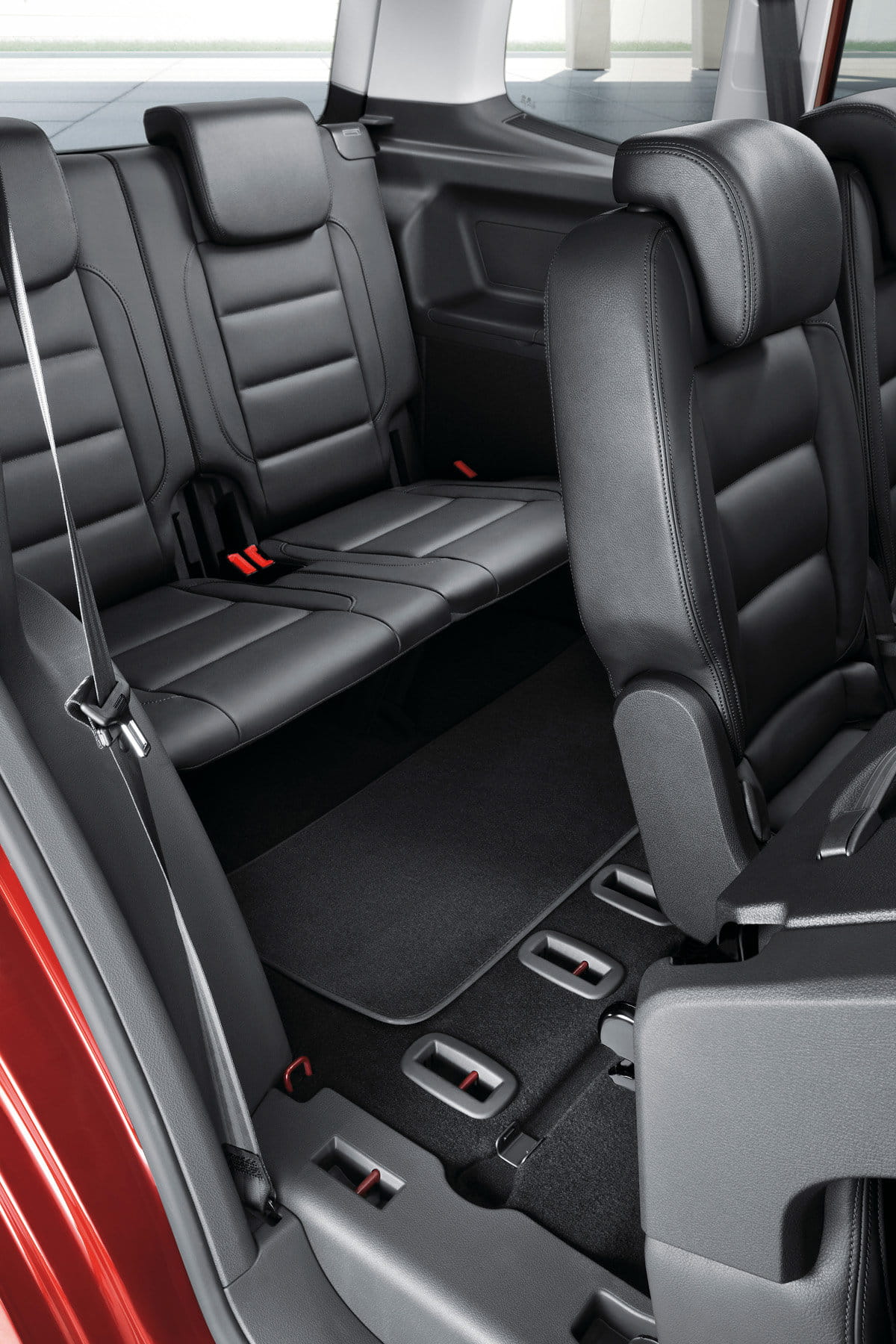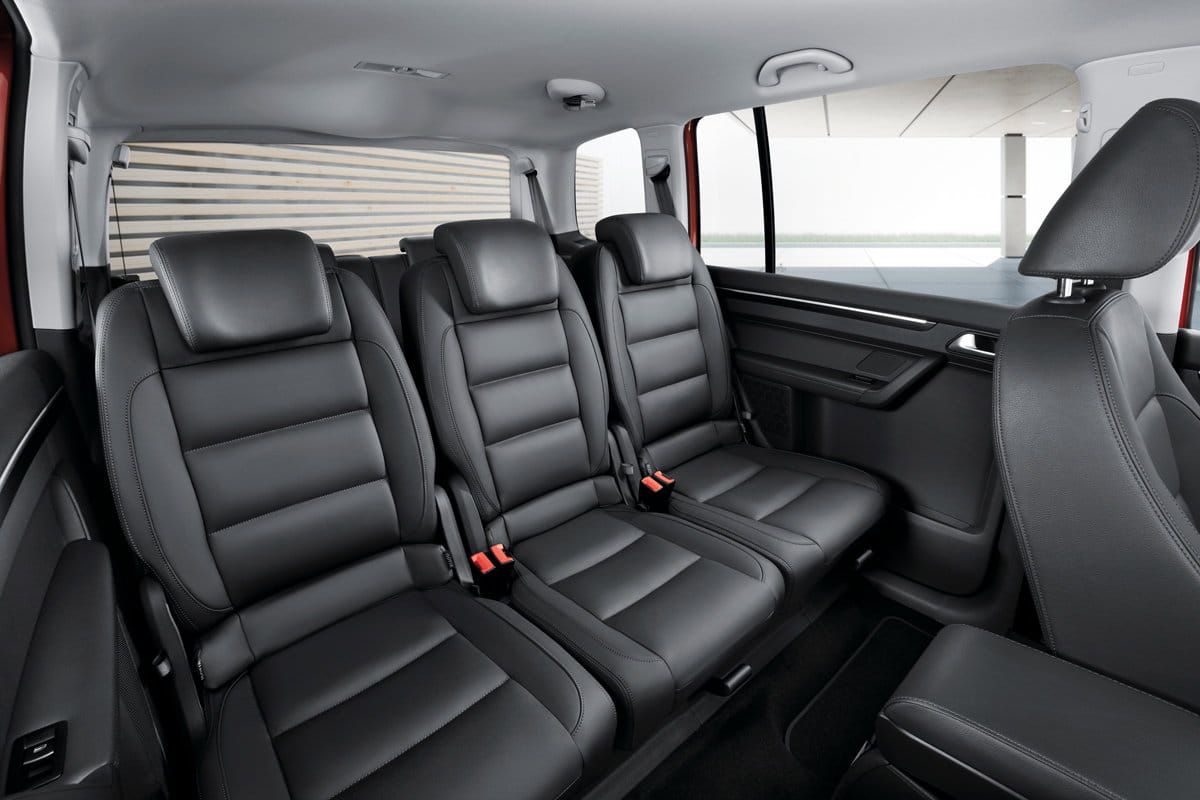 La tercera fila consiste en dos asientos individuales algo más pequeños que los de la segunda fila y que se pueden ser plegados debajo del maletero, en cuyo caso se eleva la altura de la superficie de carga en 7 cm en comparación con la altura que tiene sin la tercera fila. Estos asientos han sido mejorados, cuentan con un mullido más cómodo y los reposacabezas son más ergonómicos cómodos que los que lleva el actual Touran.
