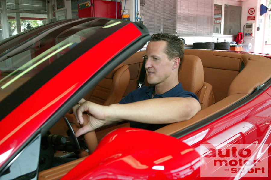 Michael Schumacher llevaba más de una década siendo hombre Ferrari, pero como es lógico su vuelta activa a la competición de la mano de Mercedes-Benz cambió radicalmente esta situación. Ya lo hemos visto en el espectacular anuncio en el túnel del Mercedes SLS AMG, y tiene tres Mercedes para su uso personal. ¿Todo ha cambiado para él? No, todo no, ya que en su corazoncito seguro que guardará un lugar muy especial para todo lo relacionado con Maranello. De hecho, en su garaje personal tiene un Ferrari California, modelo en el que participó de forma especialmente activa en sus pruebas de desarrollo.