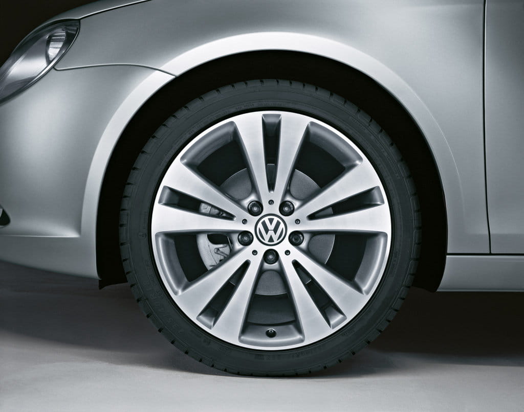 Todos los Volkswagen Eos Exclusive vienen equipados con una suspensión deportiva con la que se reduce la altura del cabrio en 1.5 centímetros. En la parte trasera lleva la firma “Volkswagen Exclusive” y en el frontal se muestra la parrilla completa cromada en señal de distinción. A mayores existen tres modelos de llantas a elegir, todas en 18 pulgadas de diámetro: Samarkand y Veracruz en plateado y Chicago en antracita satinada (de izquierda a derecha en la siguiente imagen).