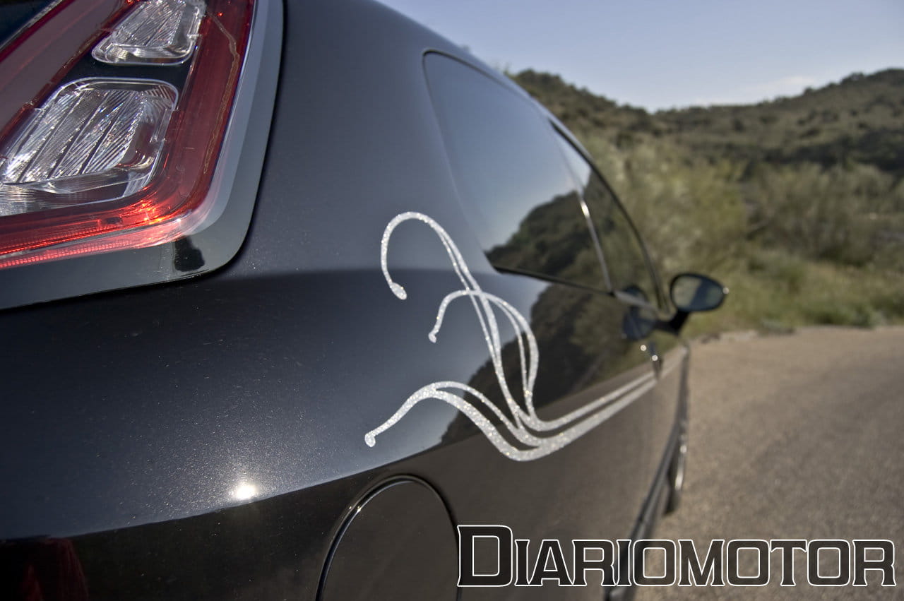 Como podréis ver en las fotografías adjuntas a esta prueba, sobre la carrocería Negro Rubacuori de nuestro Fiat Punto Evo de prueba se dibujan unos adhesivos gris plata que Fiat distribuye oficialmente como “diseño indio”. Ni le robamos el coche a un macarra ni se trata de una casualidad, de hecho la propia marca está interesada en que su coche se diferencie del resto entre otras cosas por incluir una serie de adhesivos que a fin de cuentas son una solución económica de personalización.