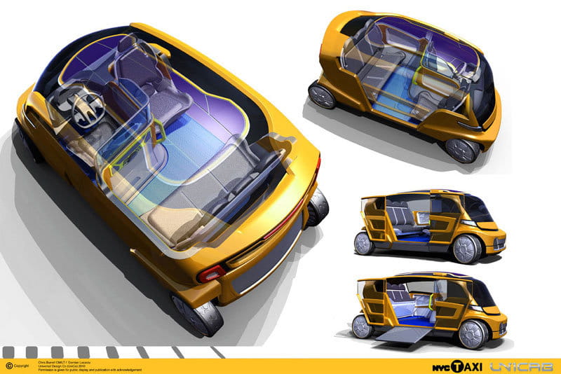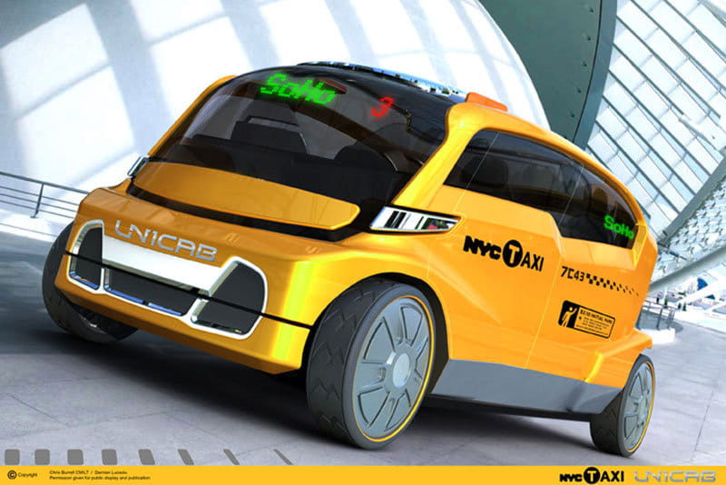 Es difícil hacernos una idea de como será el taxi en un futuro más o menos lejano, más aún cuando muy probablemente no sepamos ni como serán los taxis que se impondrán en los próximos años, dado que aún solo intuimos en que medida les beneficiará la entrada de los eléctricos al parque automovilístico del taxi. Es muy probable que podamos hacernos una idea observando el UniCab, un modelo conceptual que se basa en la eficiencia energética, la accesibilidad y el confort del conductor y de sus clientes.